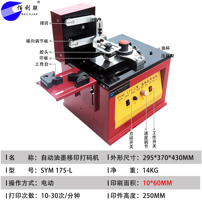 175小型刻钢板刮刀式全自动电动油墨打码移印机生产日期图案字体