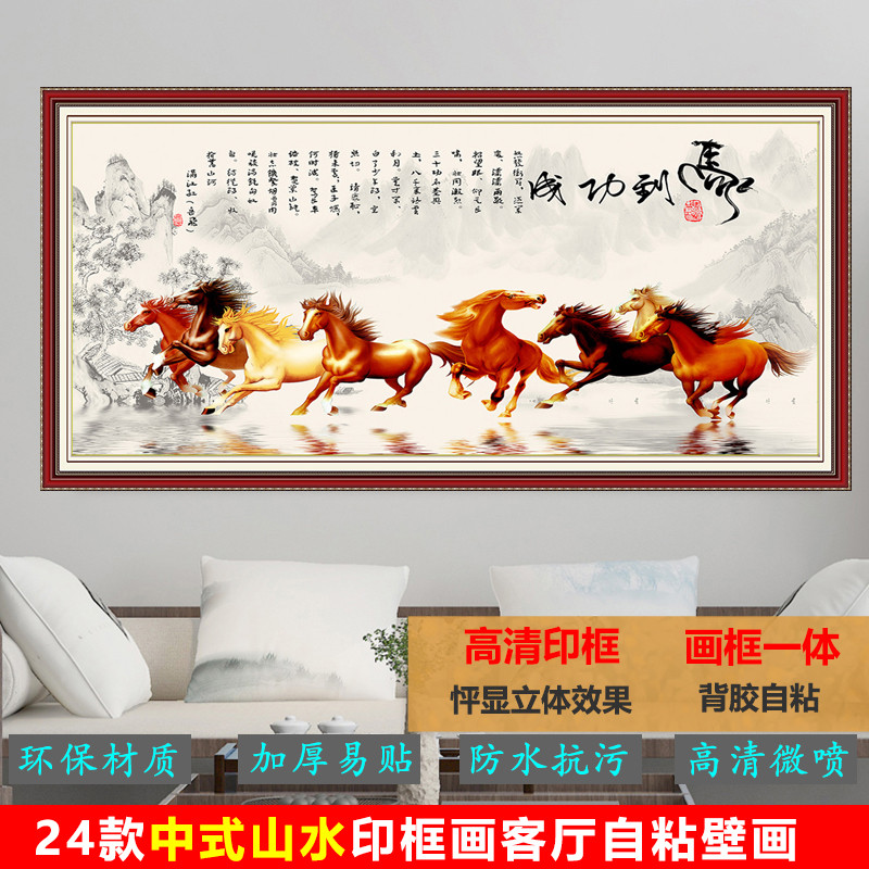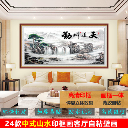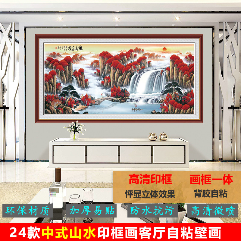 贴画壁画自粘山水画风水画国画客厅沙发背景墙纸办公室墙贴装饰画