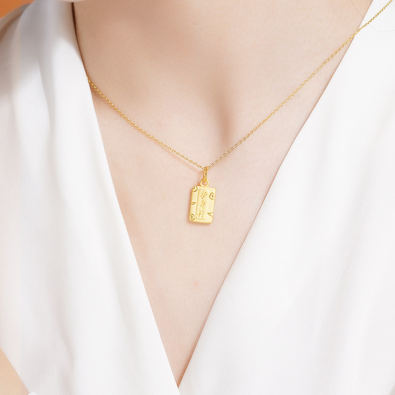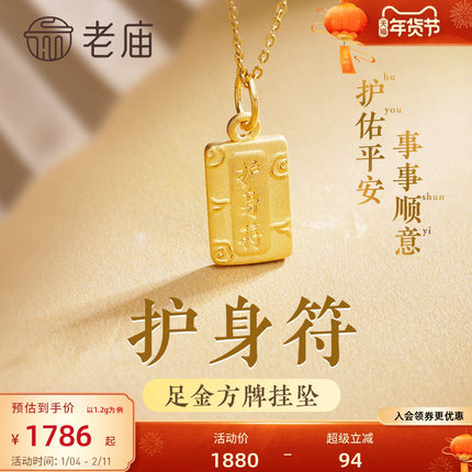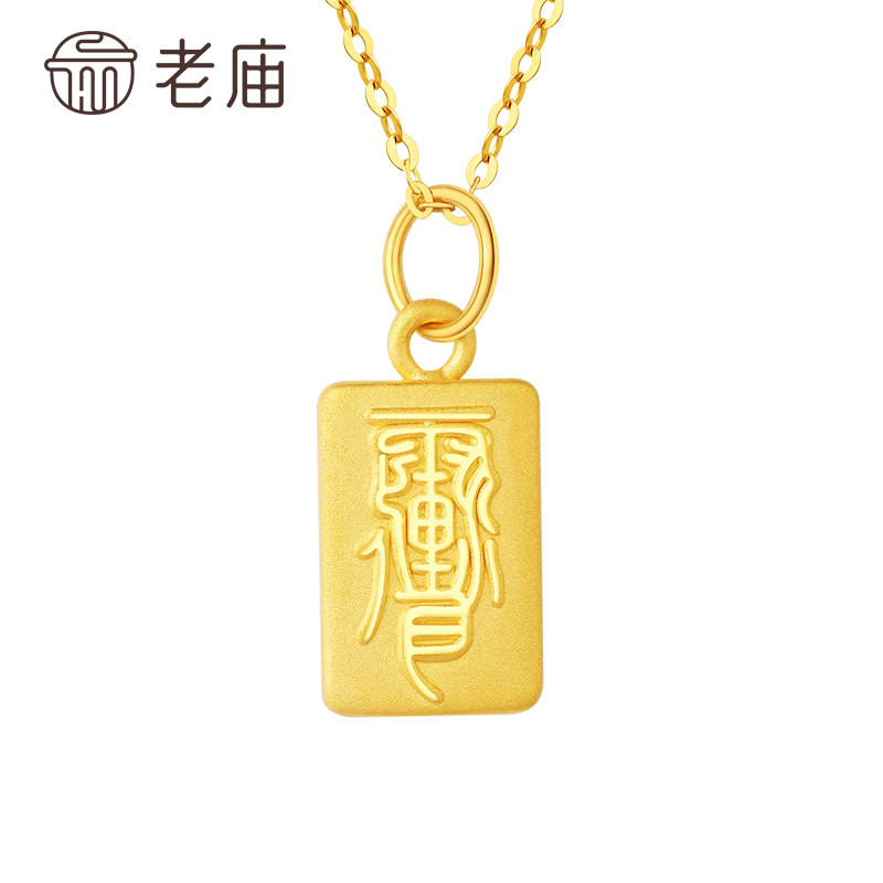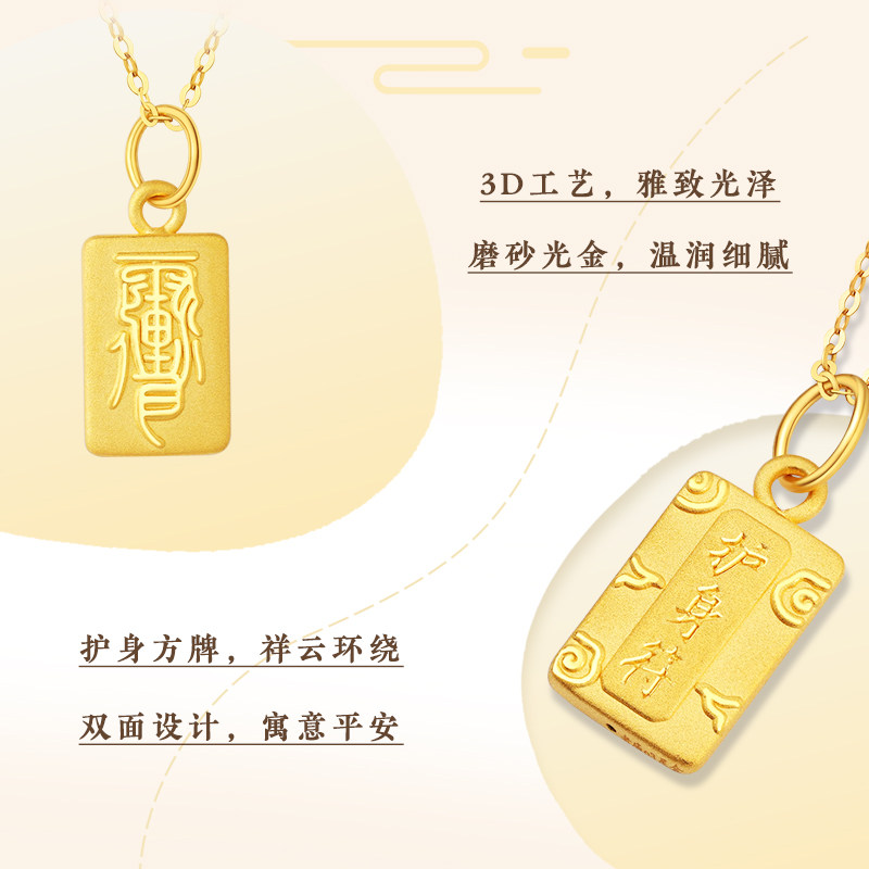 老庙黄金护身符方牌双面设计足金挂坠颈饰情侣男女款礼物官方正