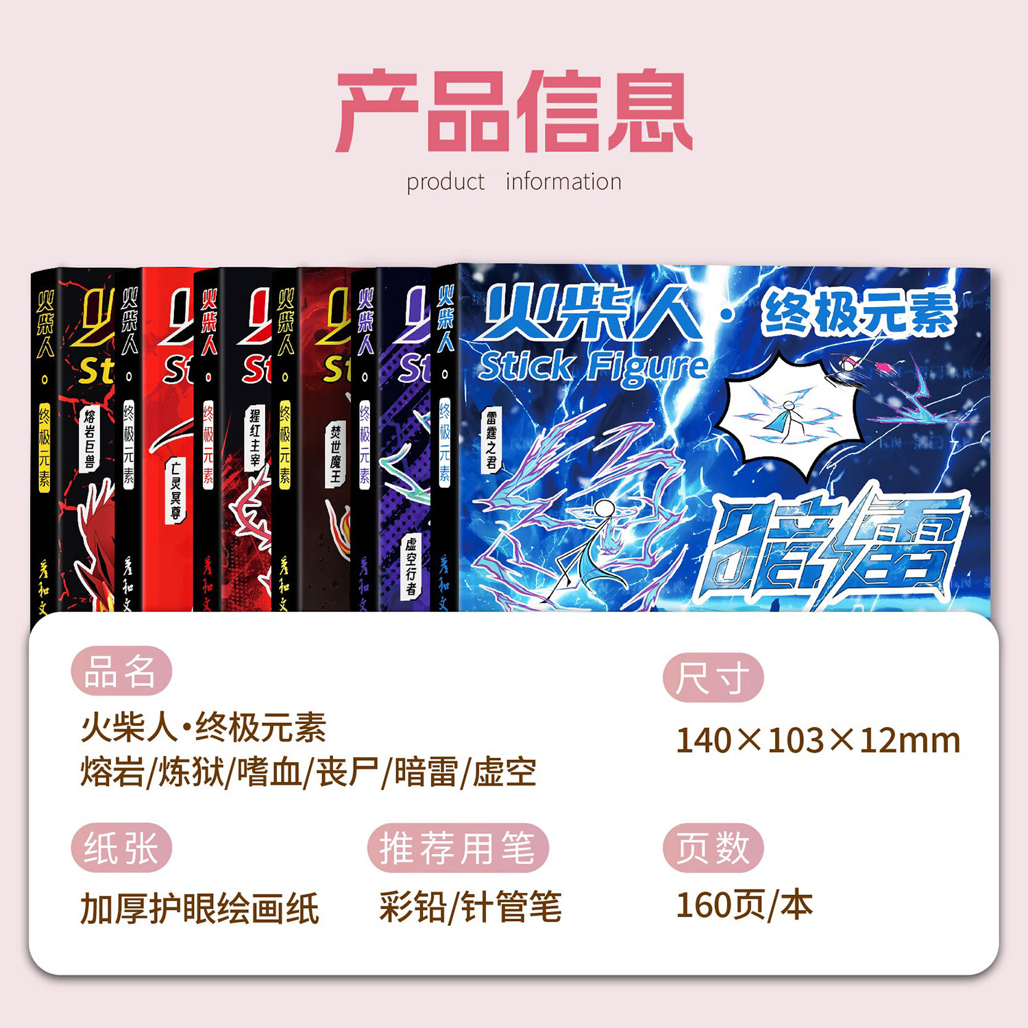 火柴人终极元素手翻书小学生专用控笔训练描摹本儿童填色涂鸦画画本技能炫酷格斗连环画漫画书动画临摹