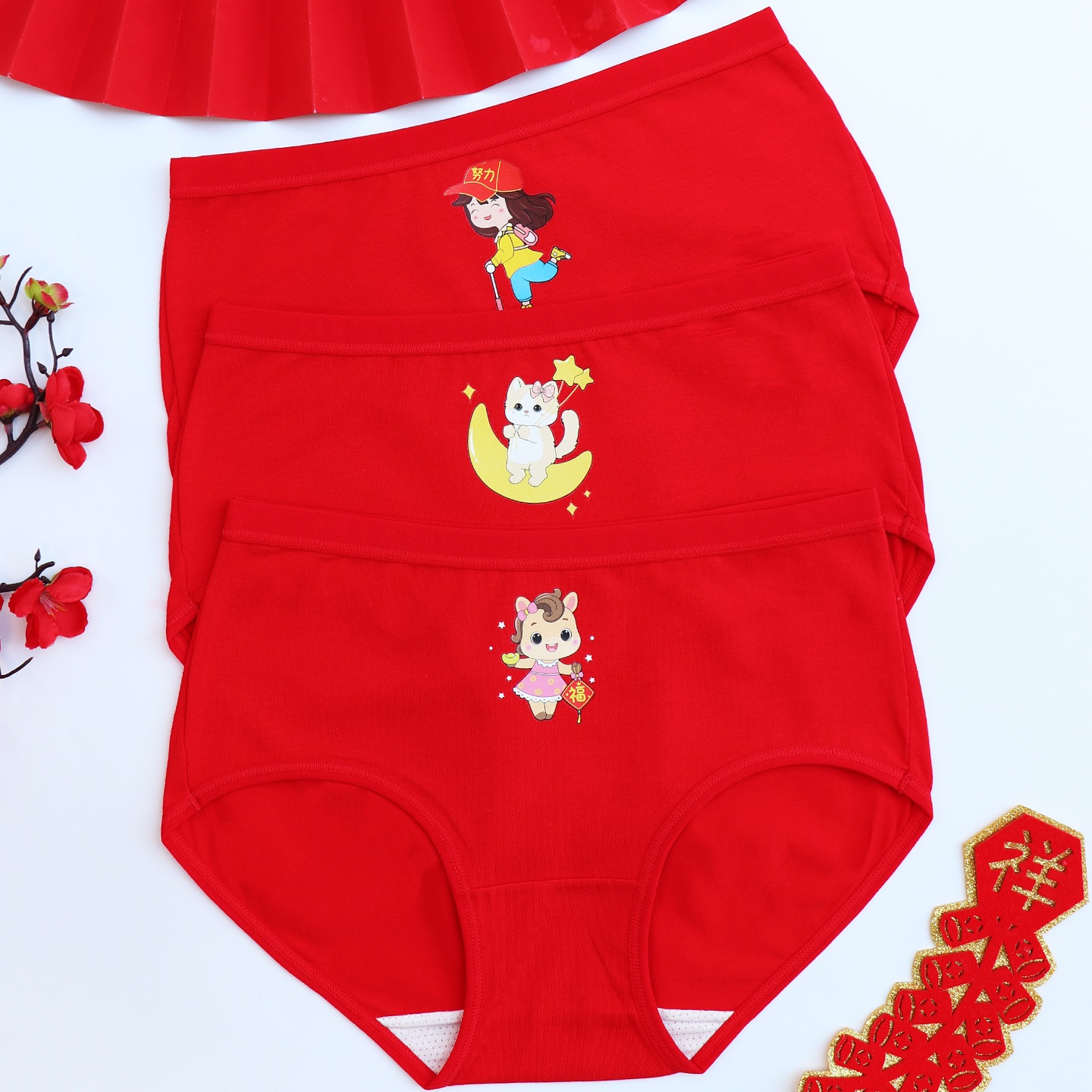 女童红内裤本命年马年中大童12岁女孩纯棉三角裤儿童红色短裤袜子