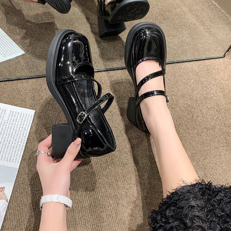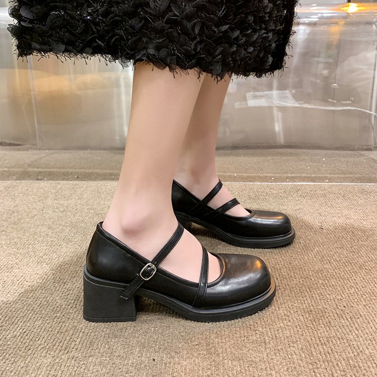 小皮鞋女厚底增高2023年新款学院风绑带粗跟中跟玛丽珍日系jk单鞋