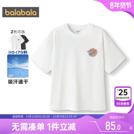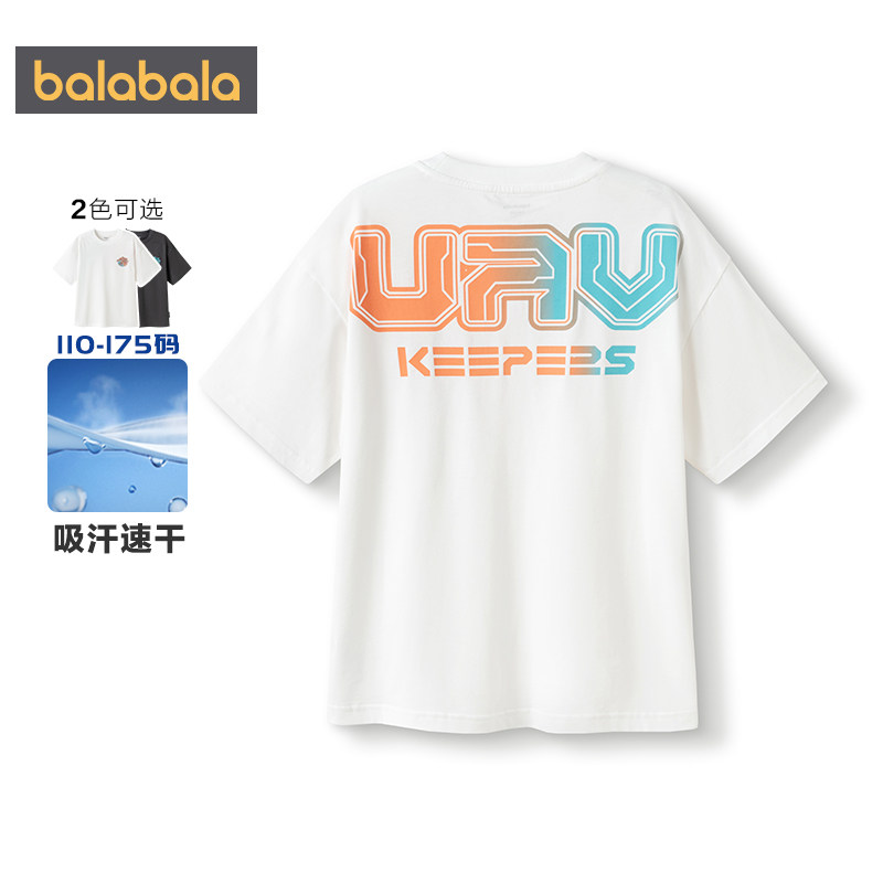 【商场同款】巴拉巴拉男童短袖速干t恤中大童上衣夏季儿童白色潮