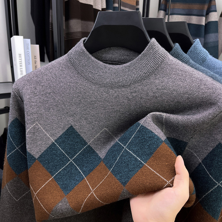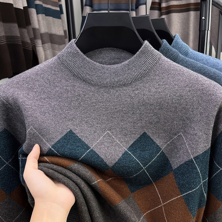 2025秋冬新款毛衣男士加厚保暖针织衫中年半高领亲肤休闲打底衫男