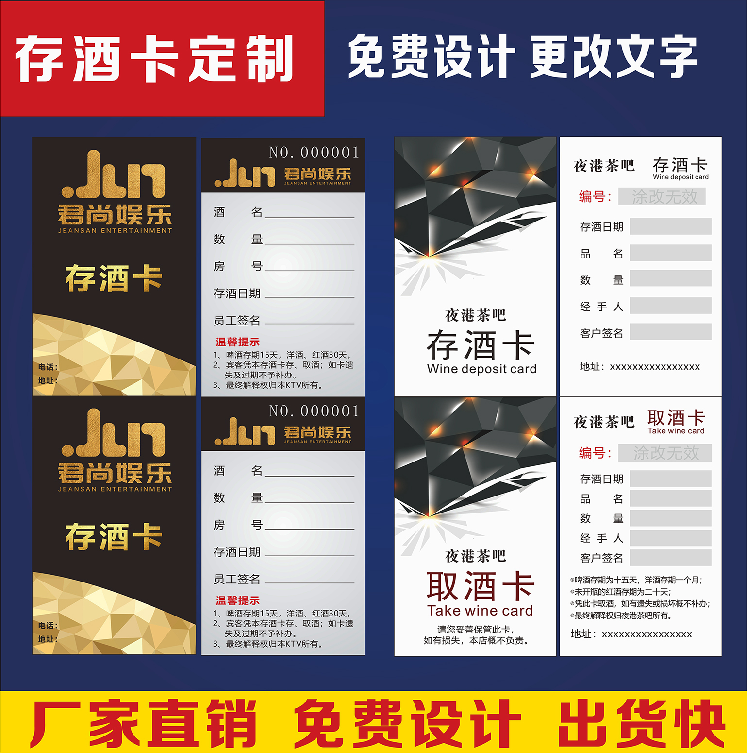 通用KTV酒吧存酒卡寄存卡开台卡取酒卡酒水单消费卡定制印刷