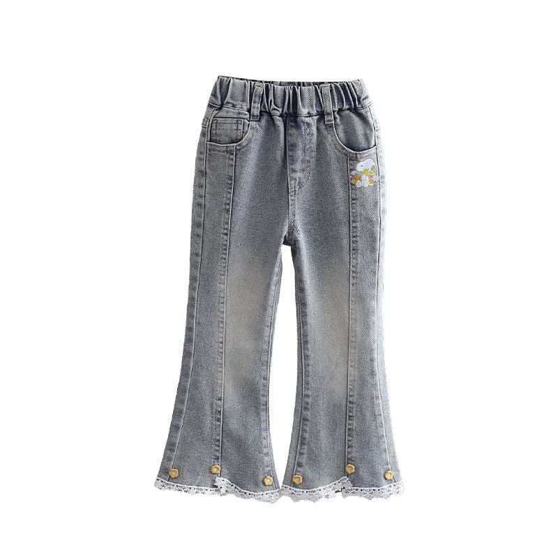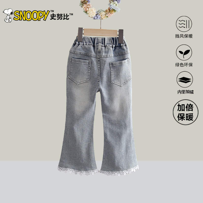 史努比女童冬季牛仔裤2025新款儿童加绒保暖喇叭裤小女孩时髦长裤
