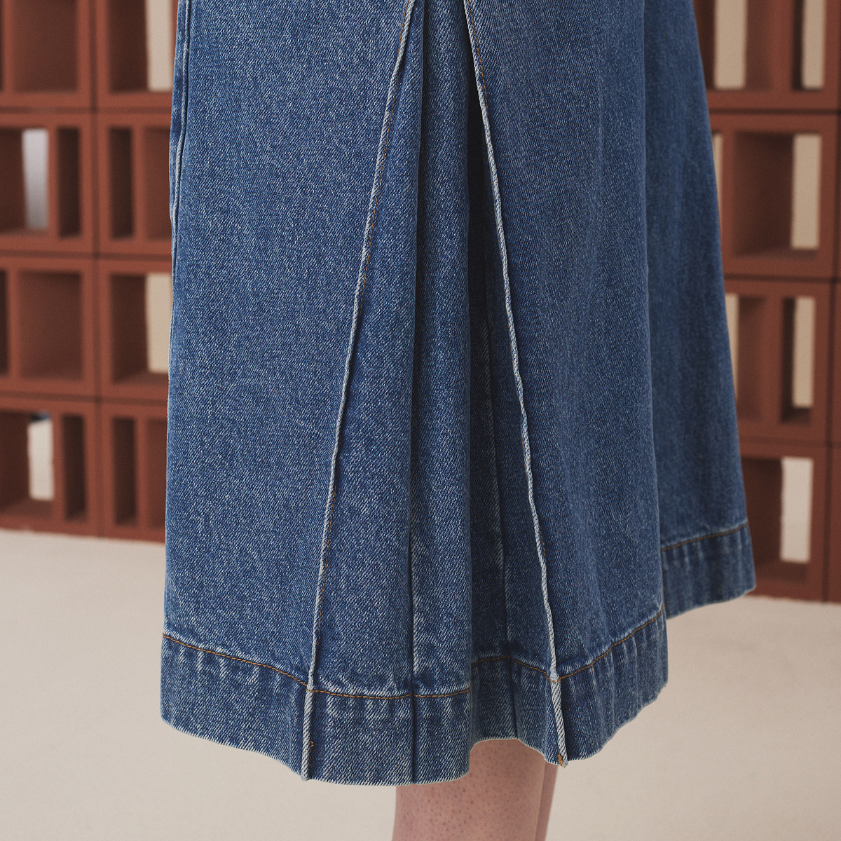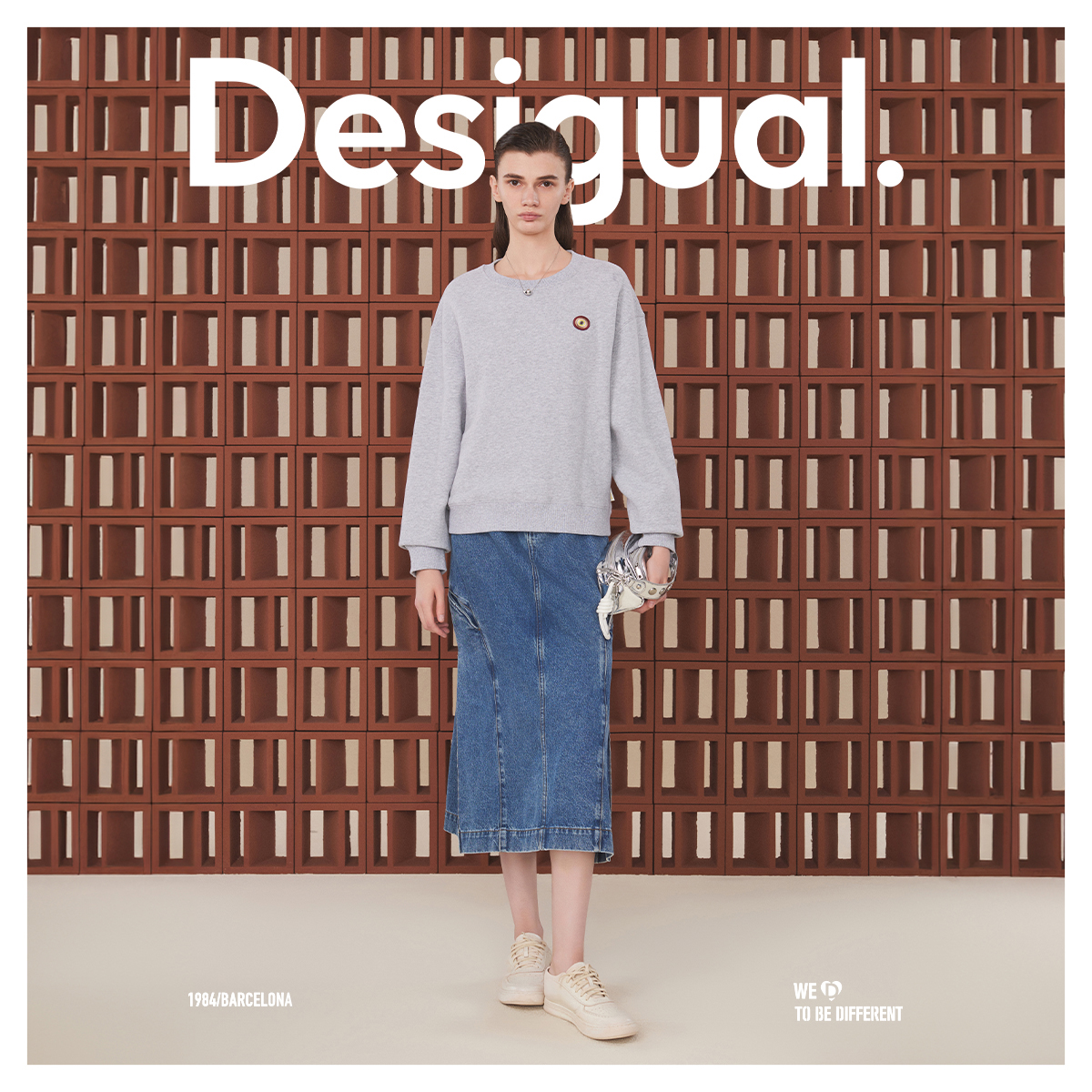 Desigual A字型牛仔解构口袋开衩中长款半身裙