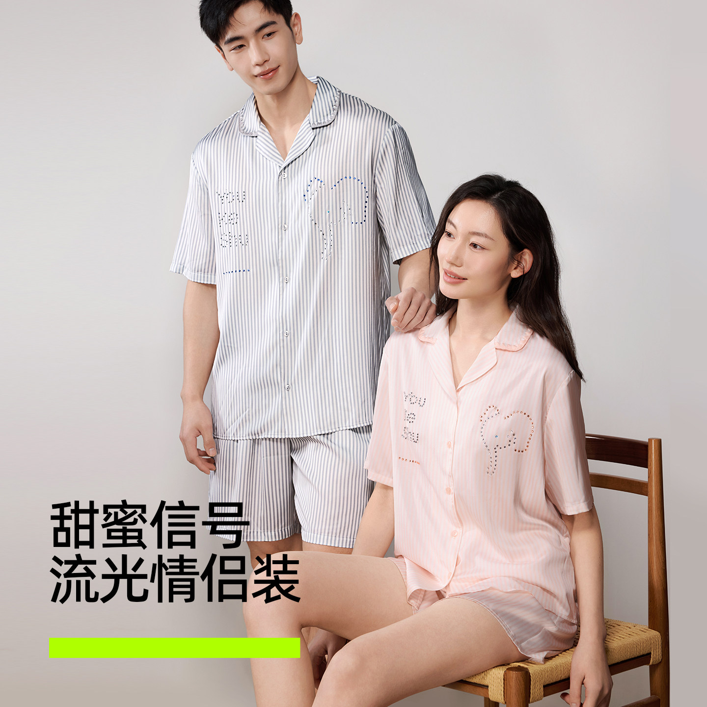 有棵树流光锦睡衣女款春夏季冰丝短袖套装凉感10A抗菌情侣家居服