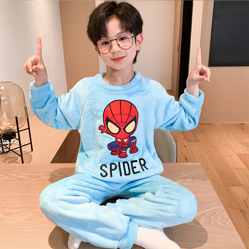 男童法兰绒睡衣秋冬款加绒加厚中小童宝宝2025新款珊瑚绒家居服套