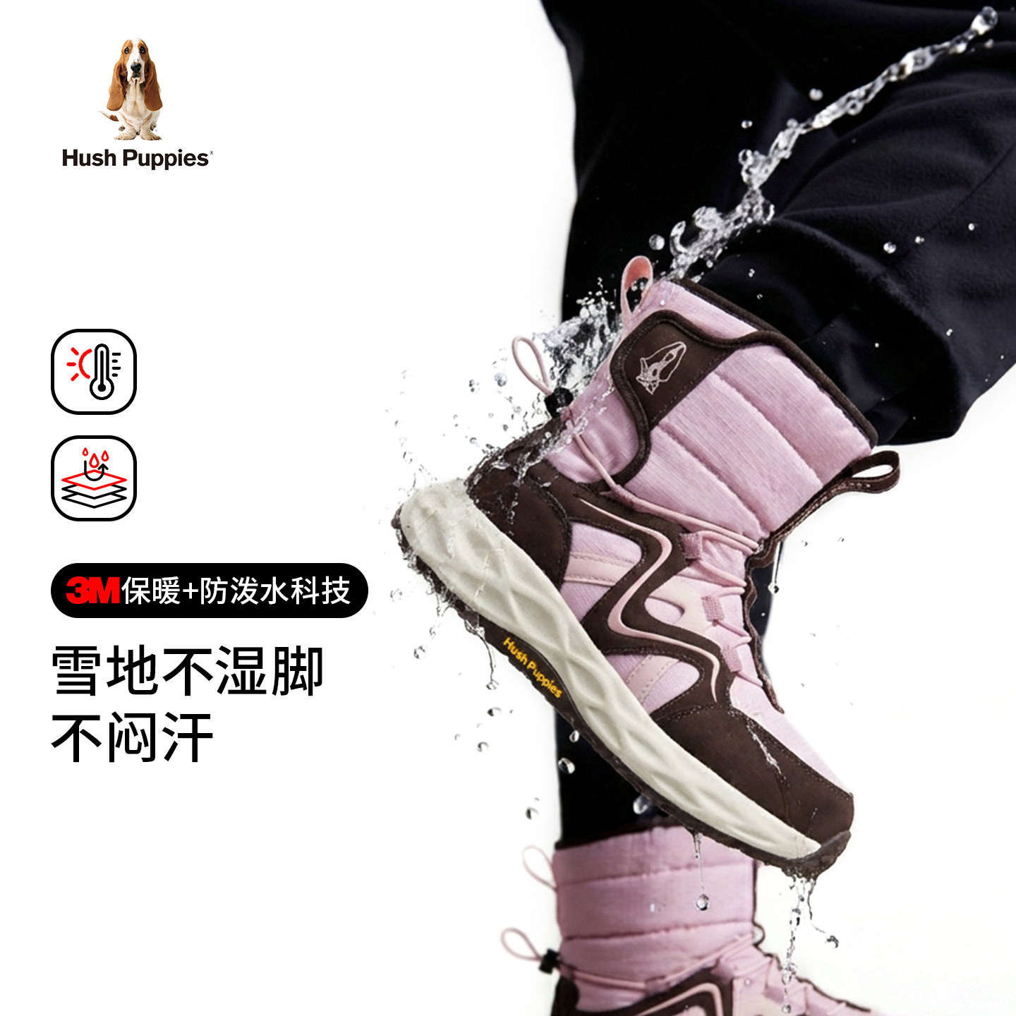 【3M新雪丽】暇步士童鞋儿童棉鞋绒绒靴冬女童保暖二棉户外运动鞋