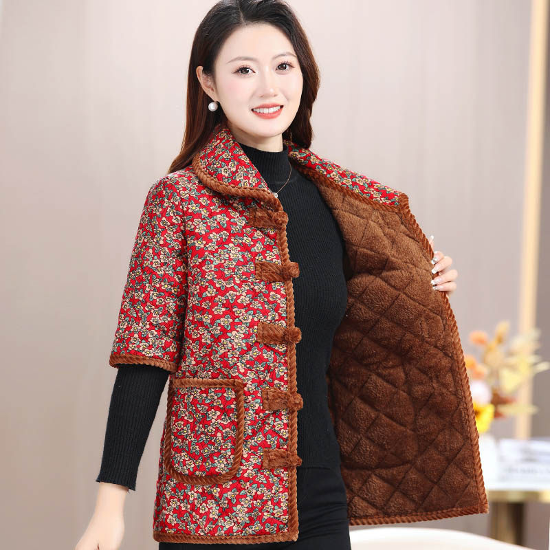 短袖棉衣加绒马甲女秋冬外穿妈妈装半袖棉袄中老年人奶奶马夹外套