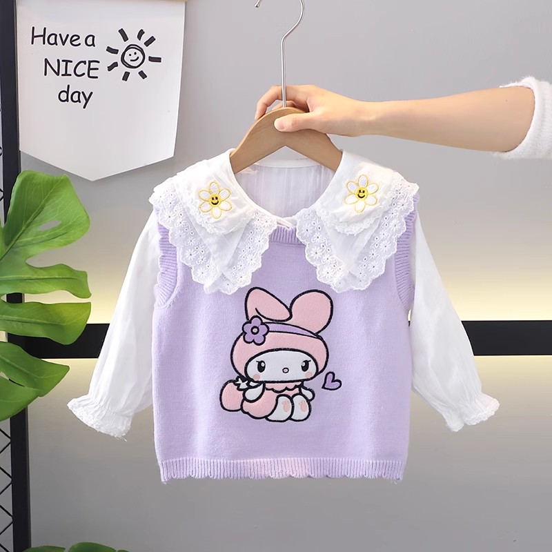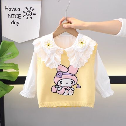 2024儿童针织马甲衬衣两件套中小童毛衣背心女童套装春秋婴儿卡通