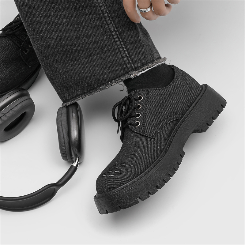 德比鞋男2025新款夏季透气小众美式帆布皮鞋休闲厚底增高大头男鞋