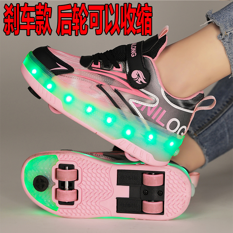 暴走鞋四轮女童轮滑鞋男童轮子鞋自动收缩隐形刹车儿童溜冰滑轮鞋