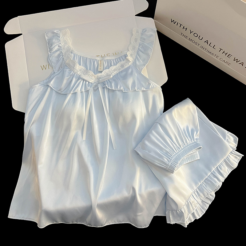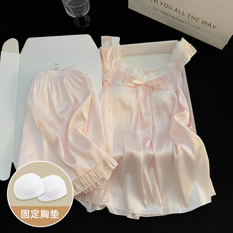 2025年新款吊带背心带胸垫冰丝绸睡衣女款性感夏季日系家居服套装