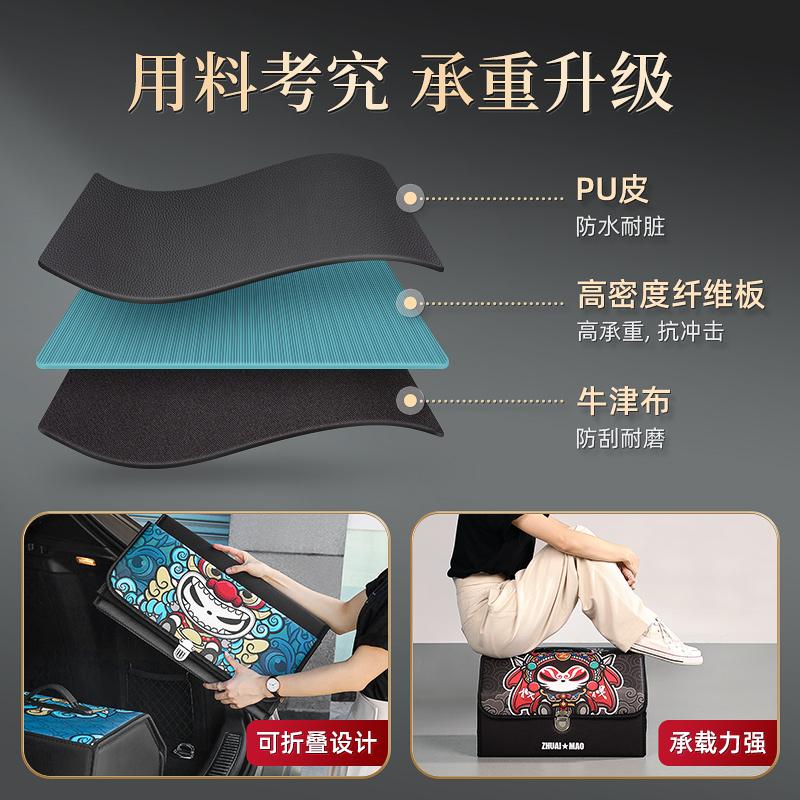 拽猫 车载收纳箱后备箱 汽车尾箱国潮行李箱卡通网红整理储物箱子