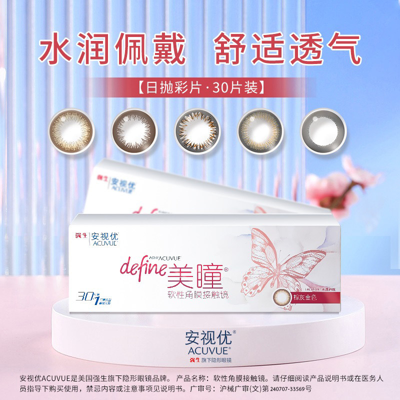 强生安视优彩色隐形眼镜define美瞳日抛自然混血大小直径