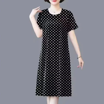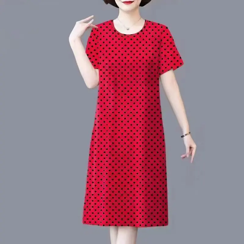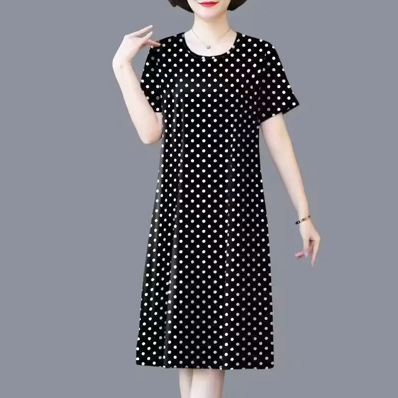 中老年妈妈装印花连衣裙2025夏季新款大码宽松遮肚时尚休闲中长裙