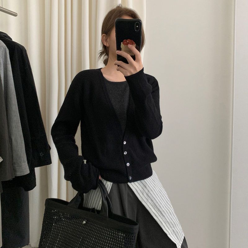 TG 淡人穿搭 拼色假两件套头宽松针织衫女2025秋季新款毛衣25778