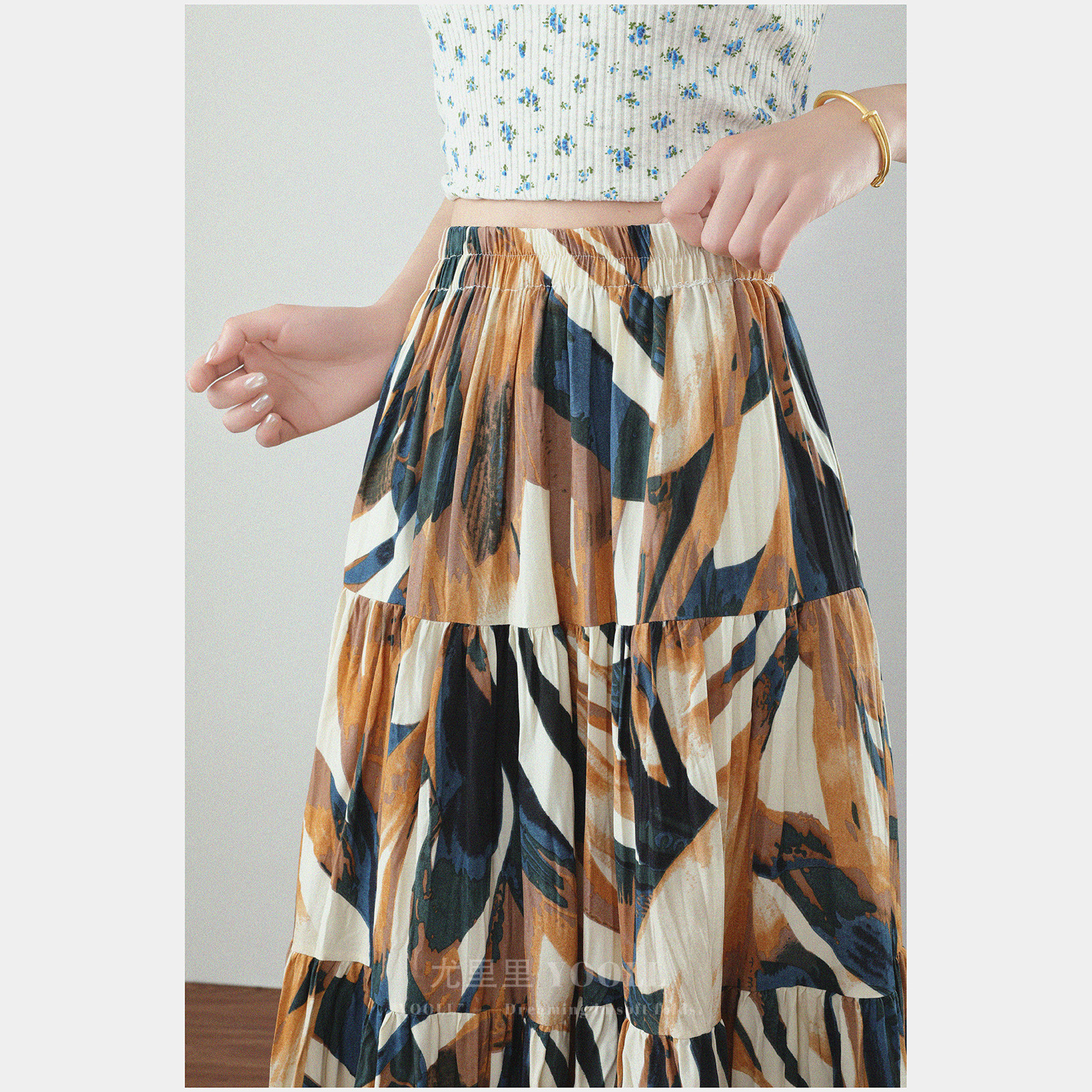 法式不规则碎花半身裙2026春夏新款垂感高腰显瘦复古百搭大摆长裙