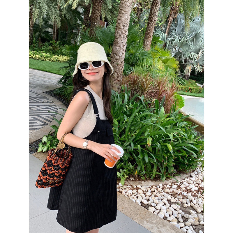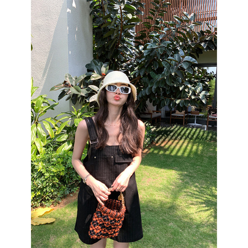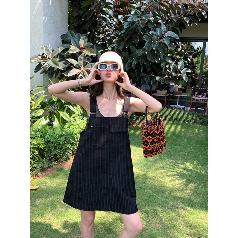 2025年夏季新款美式休闲条纹背带裙女装宽松显瘦小个子短裙连衣裙