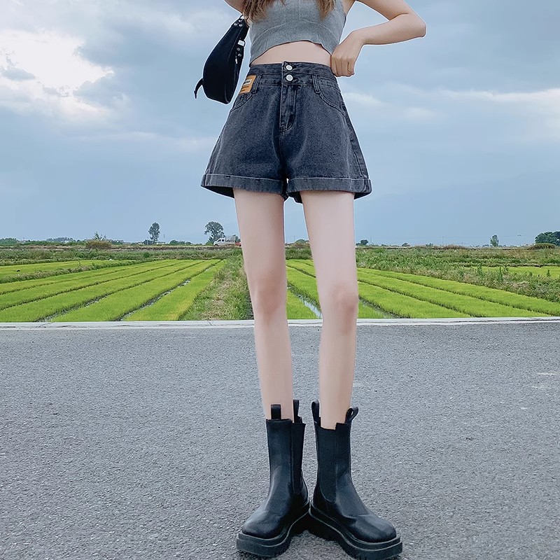 宽松显瘦牛仔短裤女款爆款2025新款高腰梨形身材夏季辣妹A字热裤