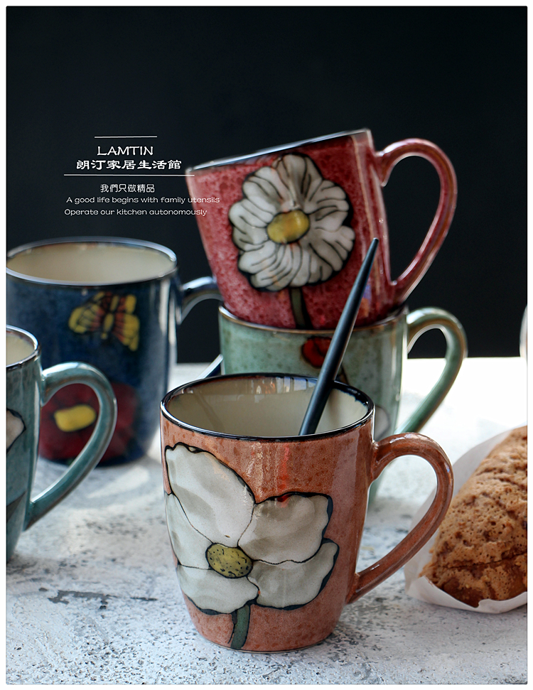 创意时尚陶瓷窑变釉咖啡杯时尚马克杯情侣杯 手绘杯子出口日本