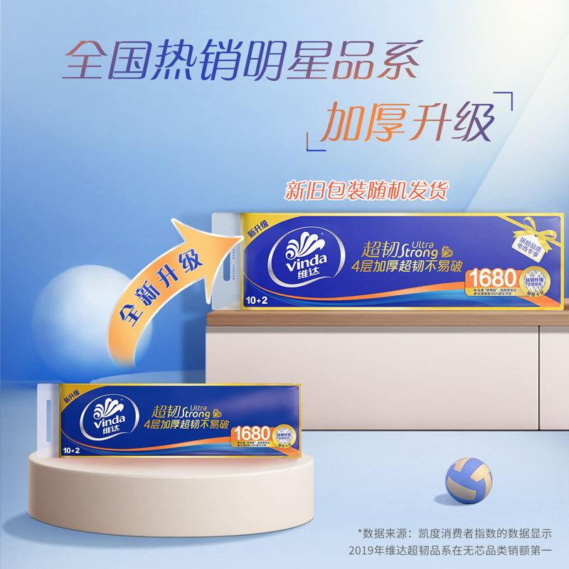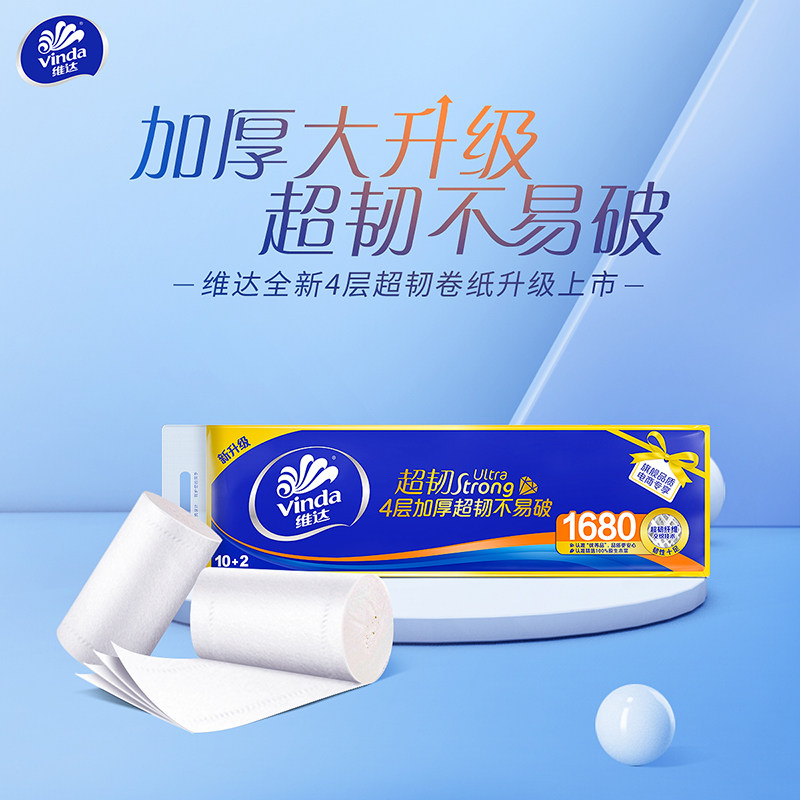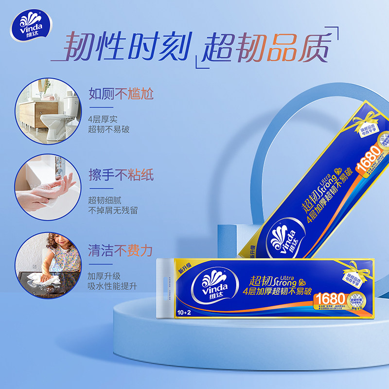 维达超韧实芯卫卷4层140克12卷 厕纸家用实惠装卷筒纸卫生纸