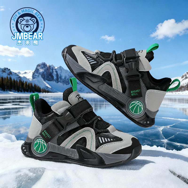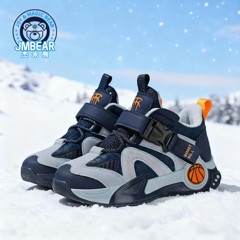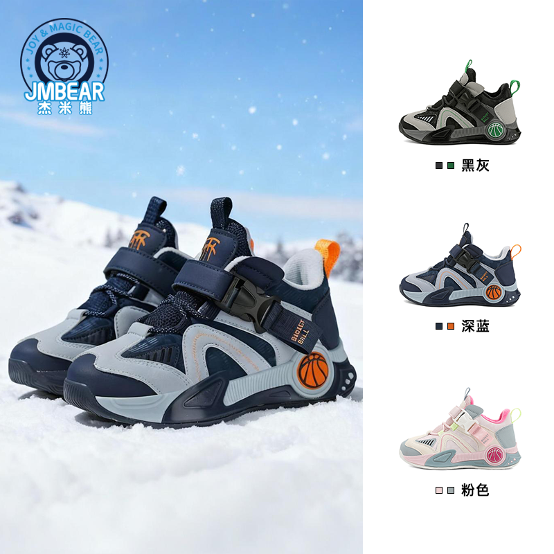 杰米熊童鞋男童二棉保暖棉鞋冬季加绒户外魔术贴运动鞋减震跑步鞋