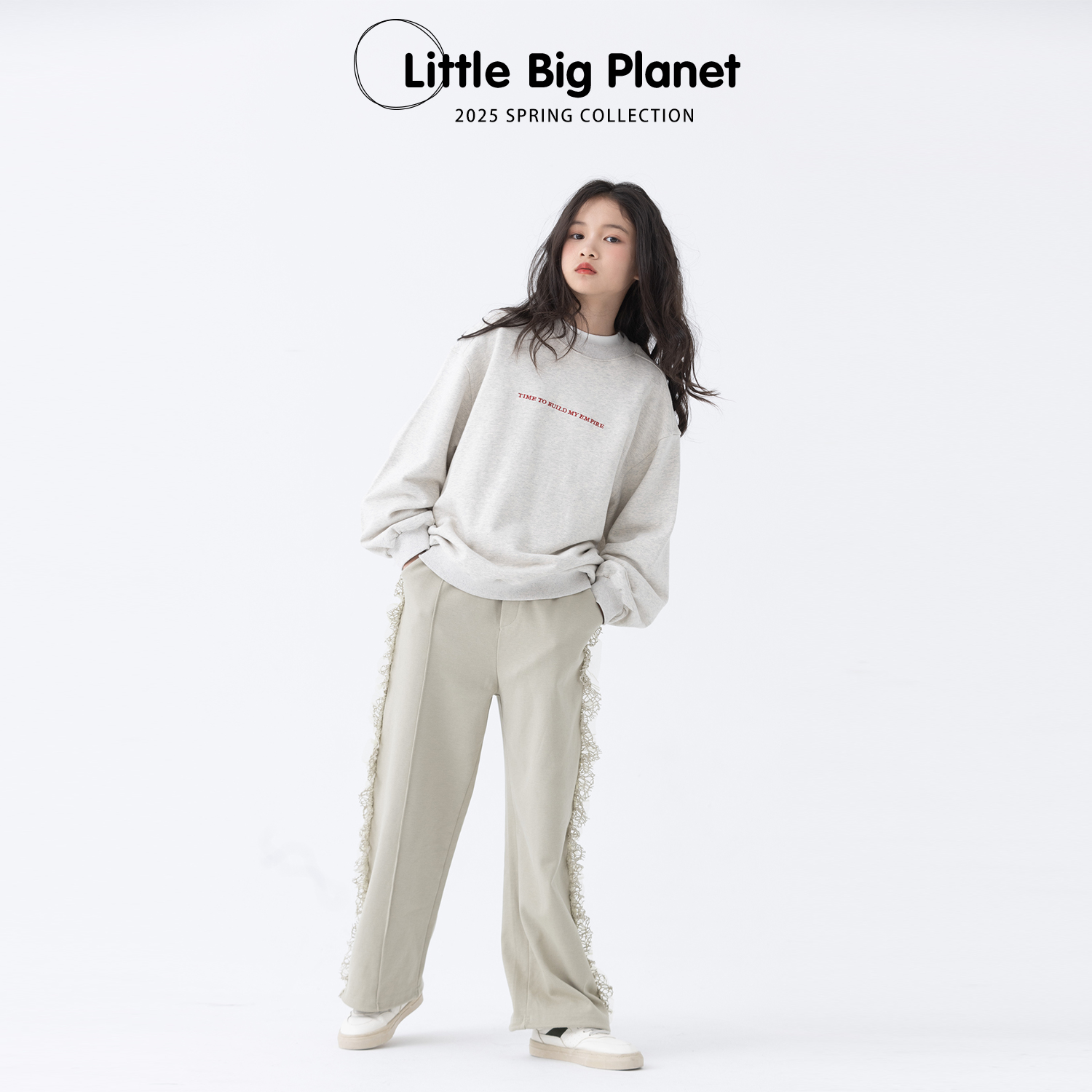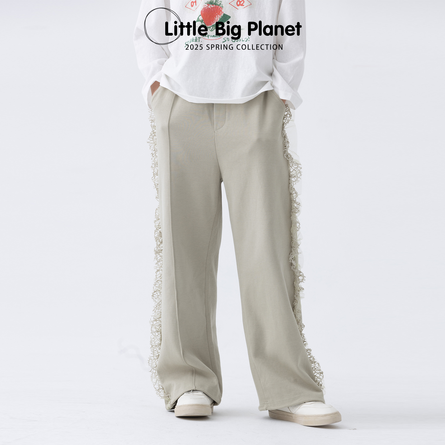小小大星球童装 树梢绿蕾丝边拼接直筒裤 女童春秋百搭宽松休闲裤