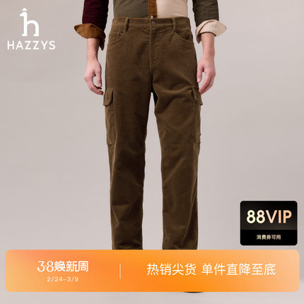 【商场同款】Hazzys哈吉斯秋冬男士休闲宽松灯芯绒工装长裤