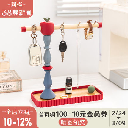 阿楹 轻奢玄关柜钥匙托盘摆件高级收纳口罩置物挂架新年红色苹果