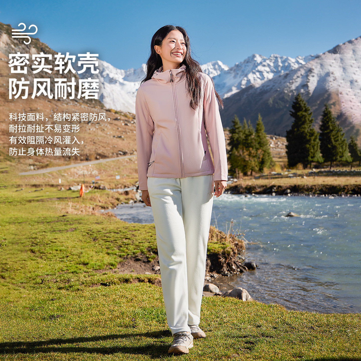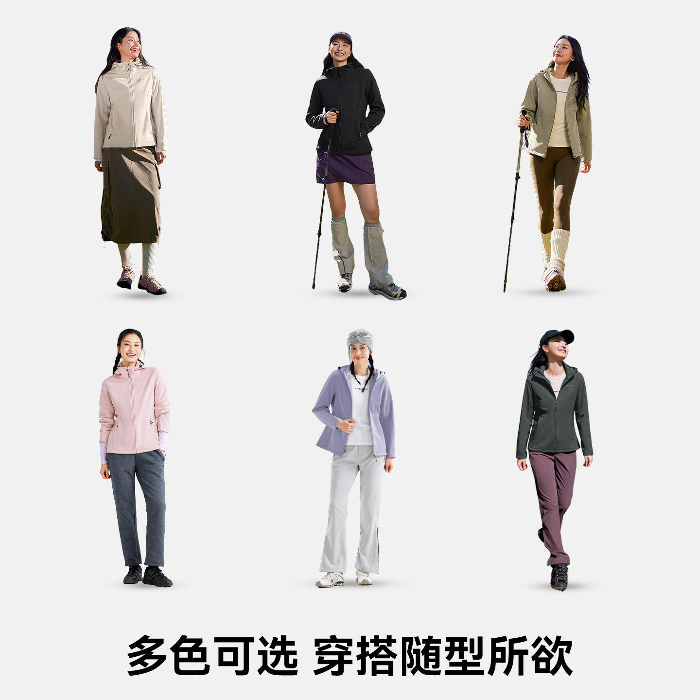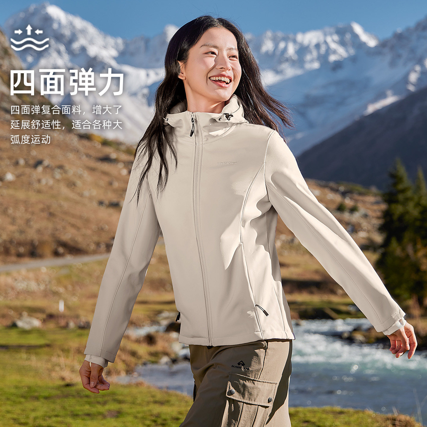 拓路者户外透气连帽软壳衣女春秋加绒高弹运动外套防泼水登山服女