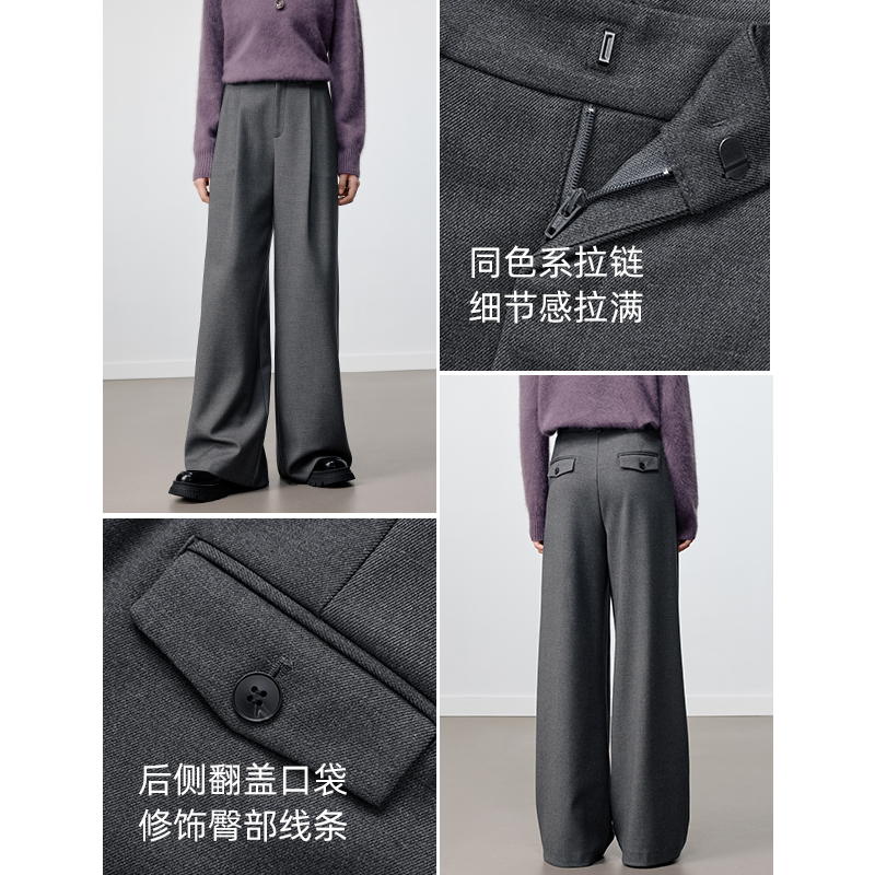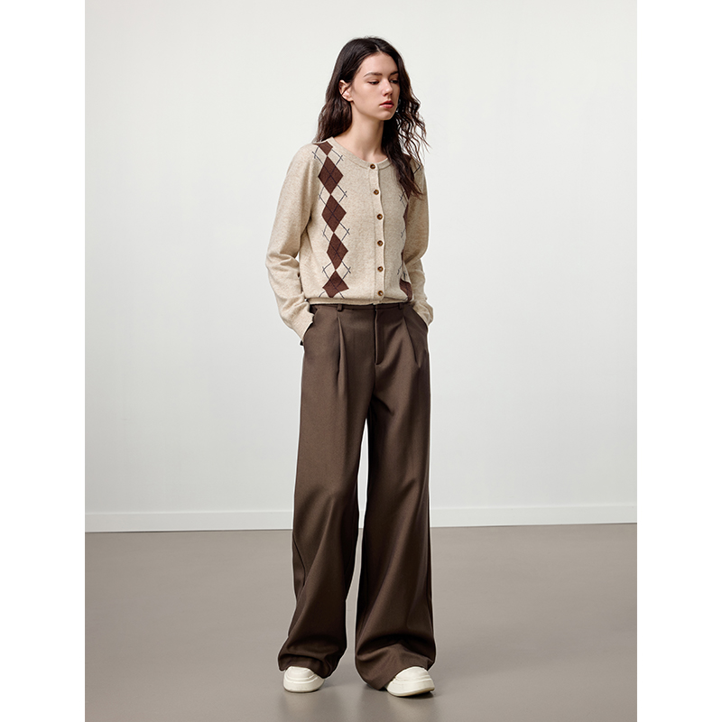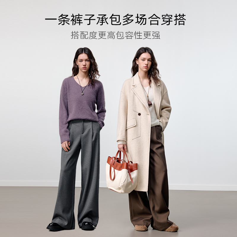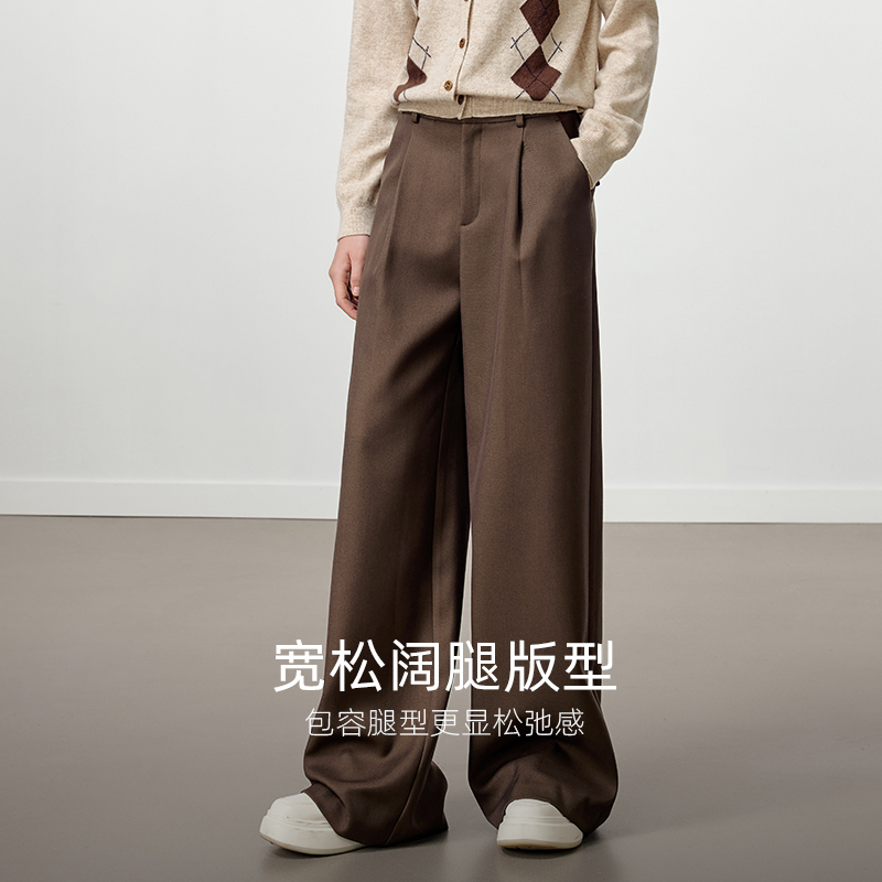 KBNE复合牛奶丝宽松阔腿西装裤女2025冬季新款松直筒咖啡色长裤子