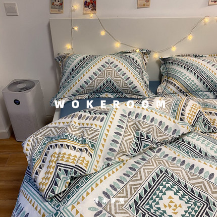 民族风纯棉四件套 波西米亚 复古几何活性印花全棉床品被套床笠款
