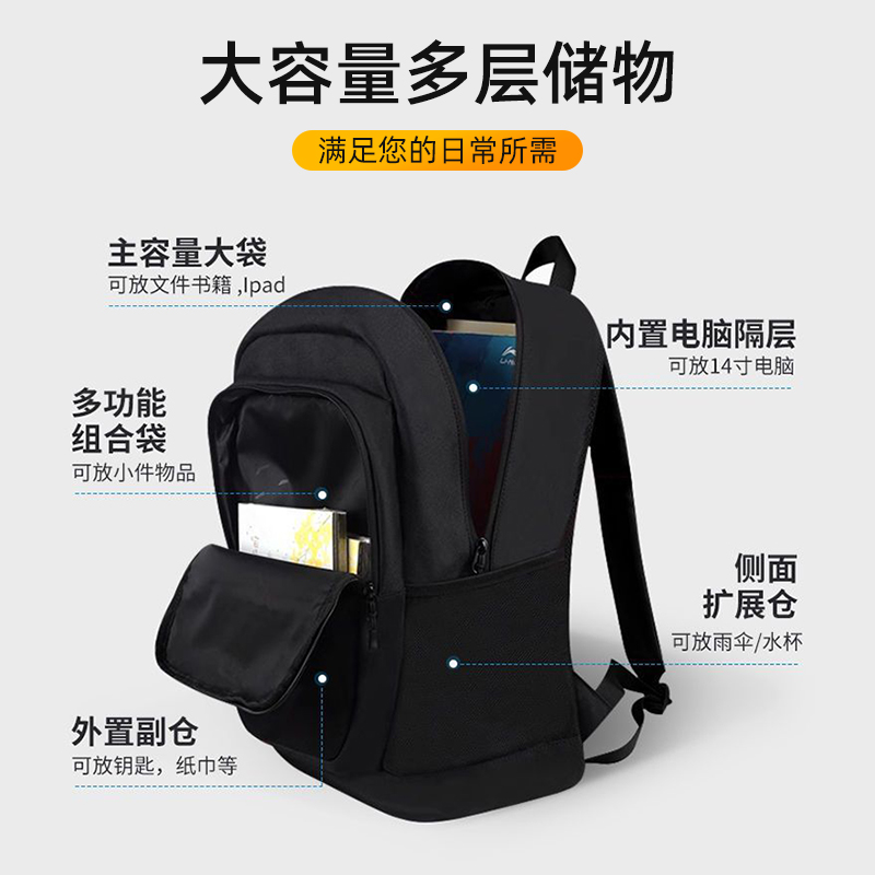 25新款 李宁双肩包书包男女大容量初中高中小学生开学轻便背包