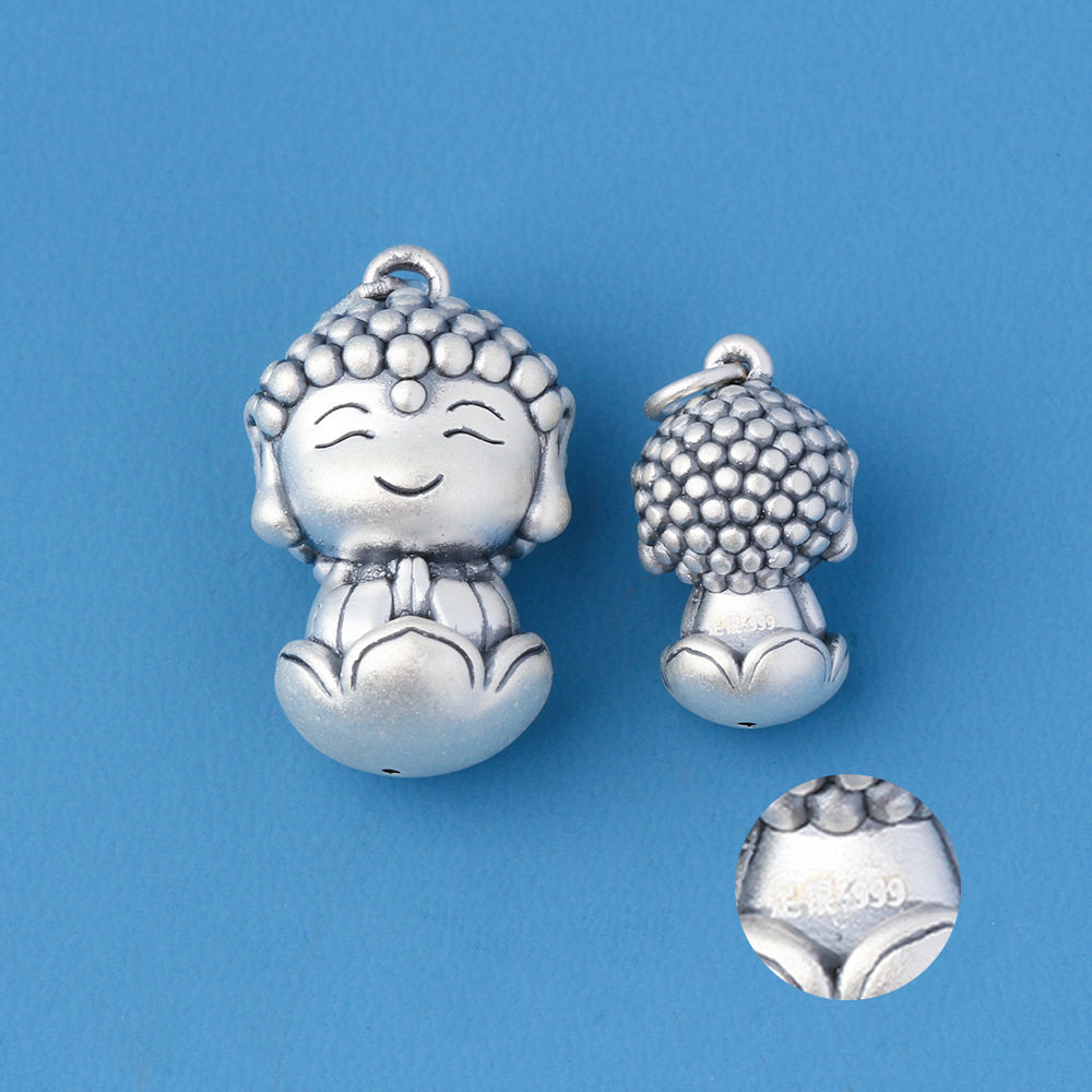 999足银小沙弥吊坠 立体弥勒佛吊坠本命佛阿弥陀佛男女款民族风