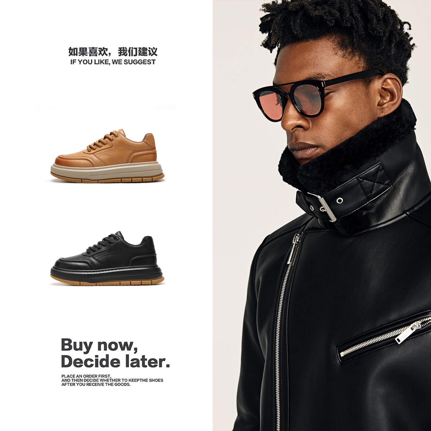 梅西【梅西】头层牛皮户外工装低帮复古保暖板鞋大黄靴男士短靴