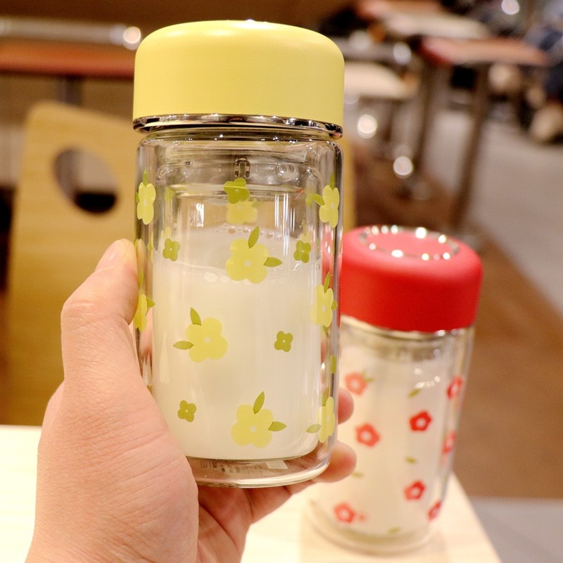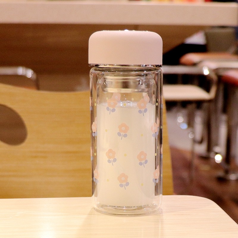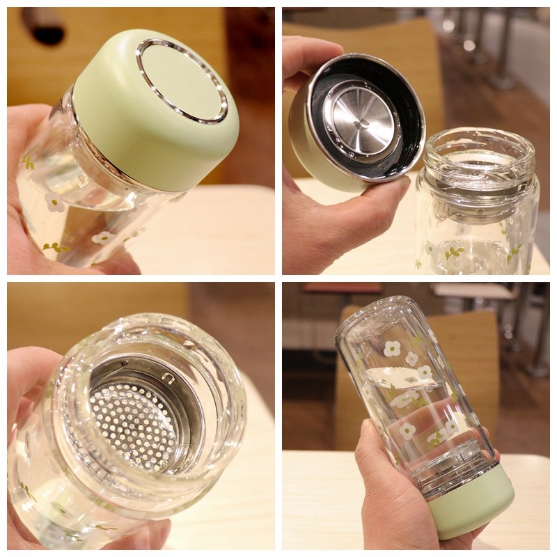 双层玻璃水杯 女可爱ins风便携茶水分离泡茶杯韩版清新耐热随手杯