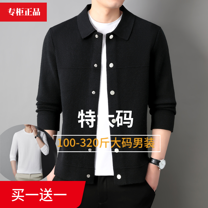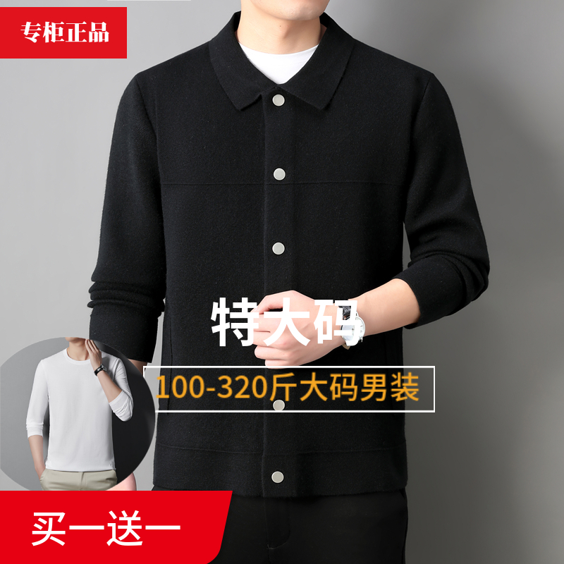 加肥加大码男装翻领加针织开衫男士胖子外套上衣特大号加厚男毛衣