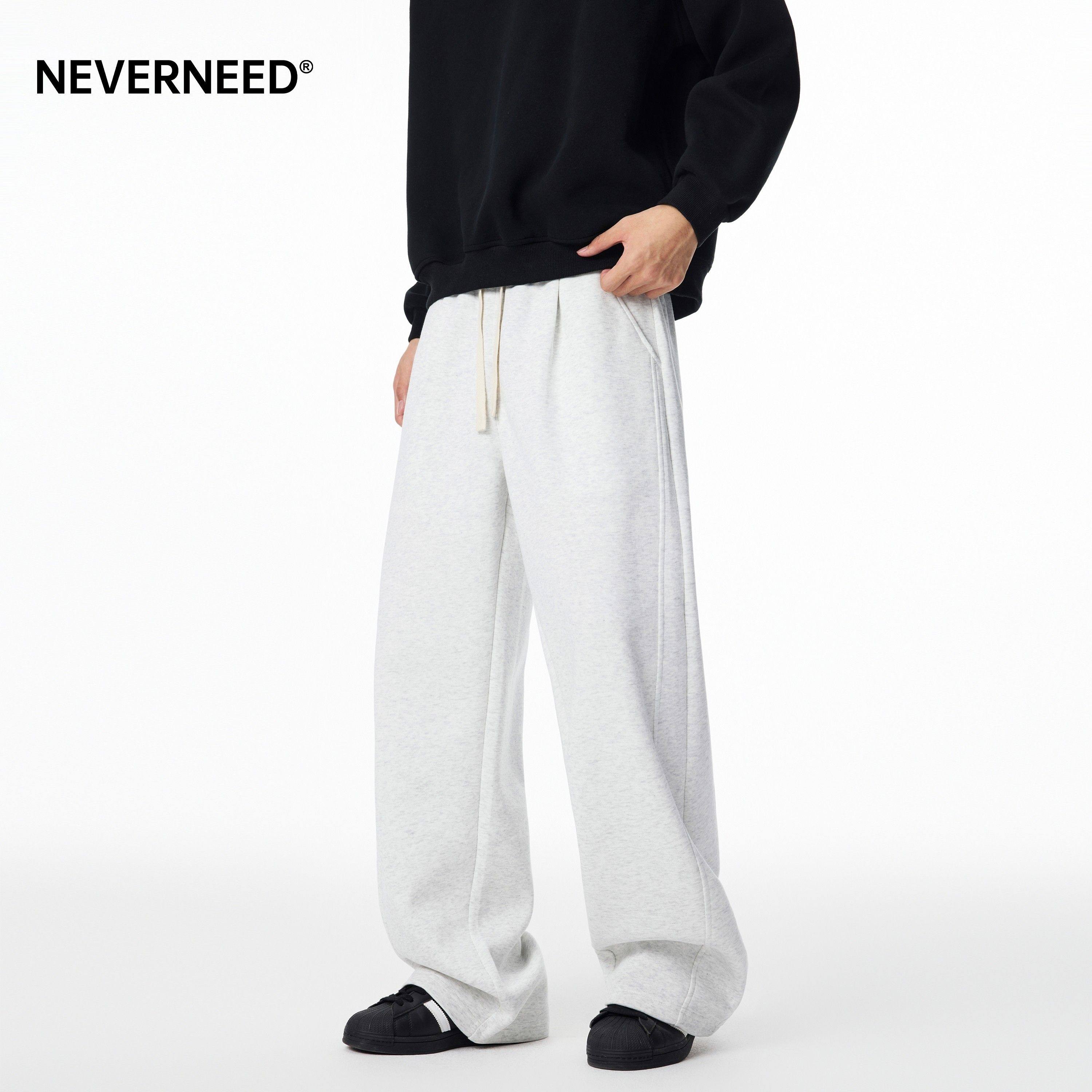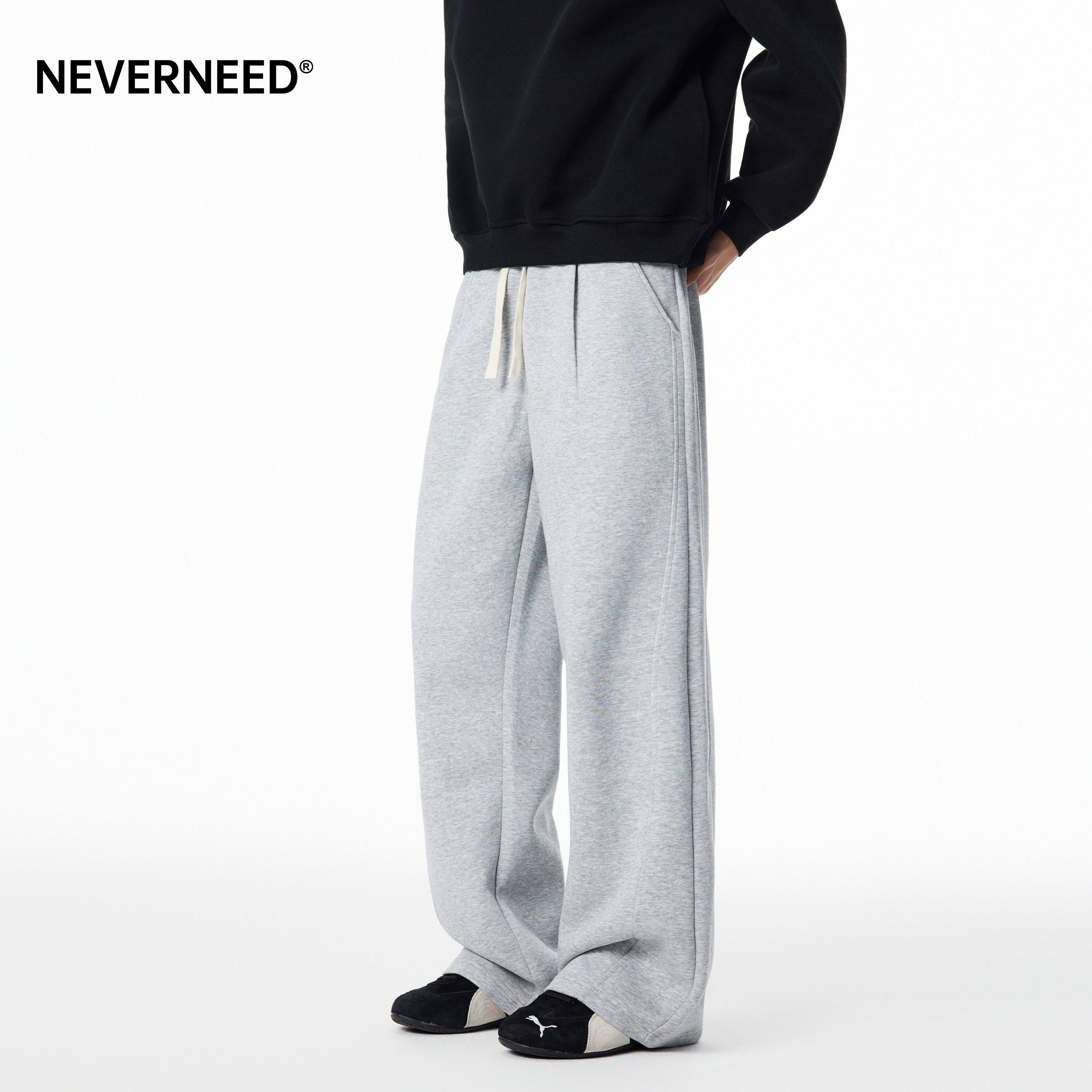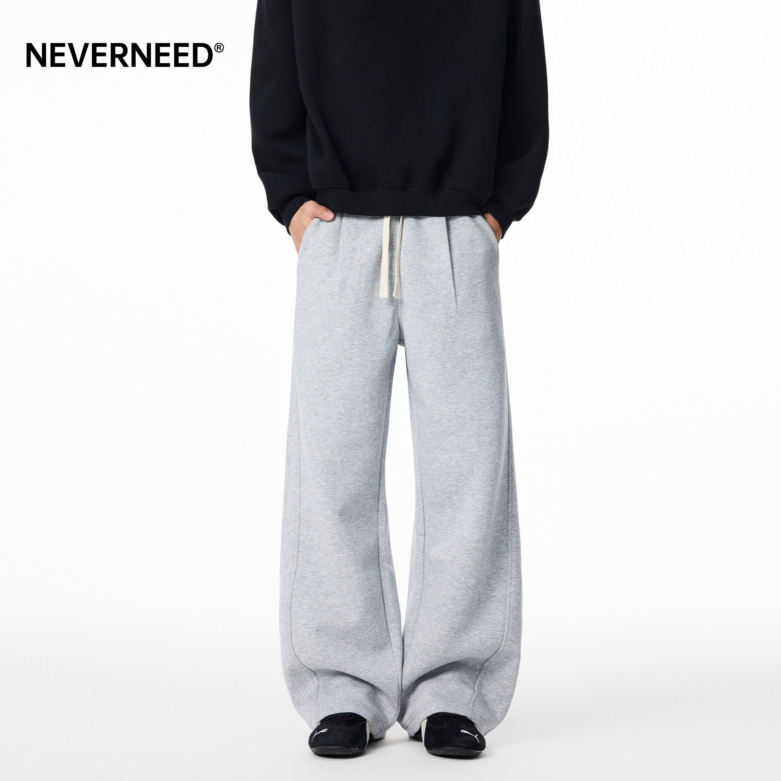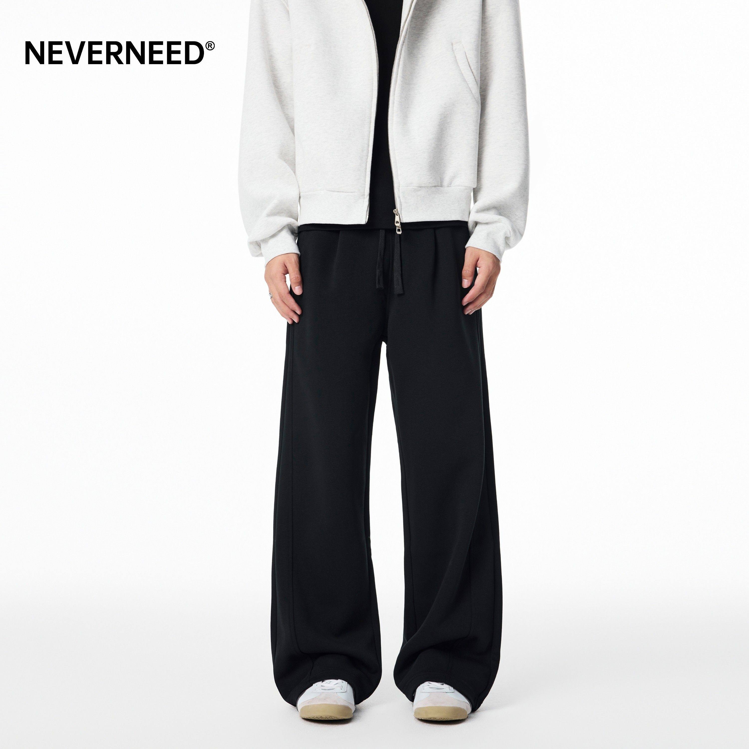 NEVERNEED宽松休闲卫裤男女秋季美式潮牌垂感A字运动直筒长裤子