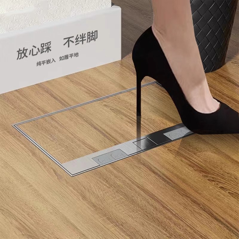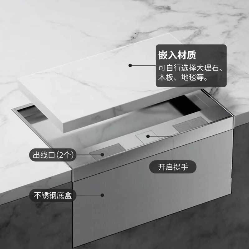 纯平隐形不锈钢嵌入隐藏式超薄大理石地插座防水五孔木地板面插座