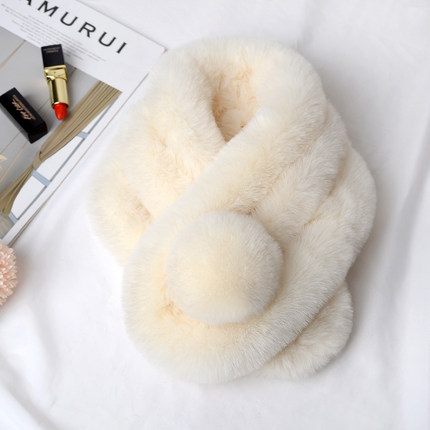 新款皮草围巾獭兔毛三管大球双面围脖女士冬季加厚户外百搭仿毛绒
