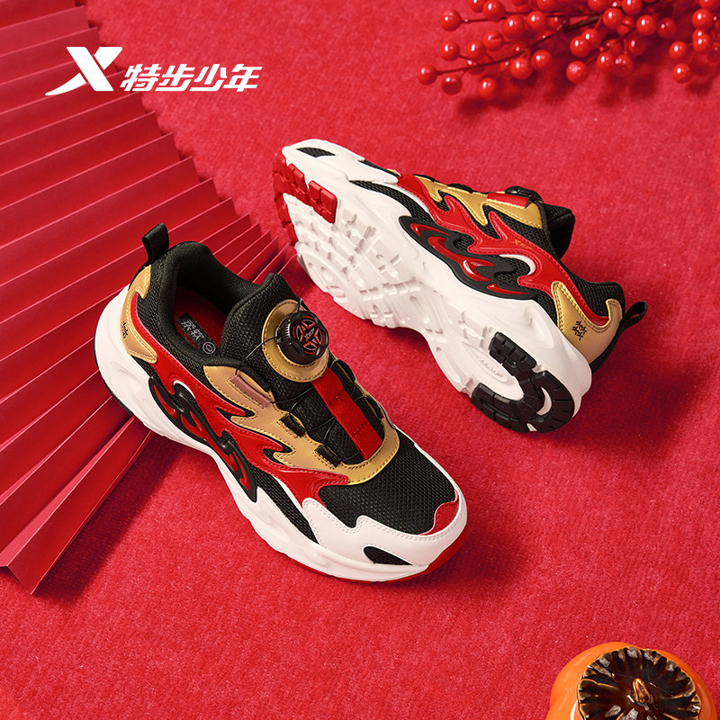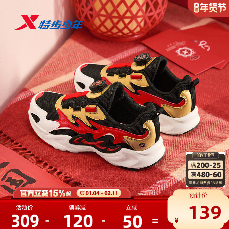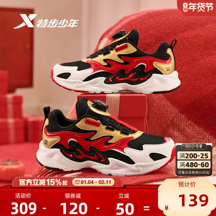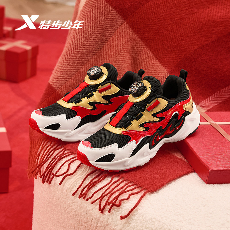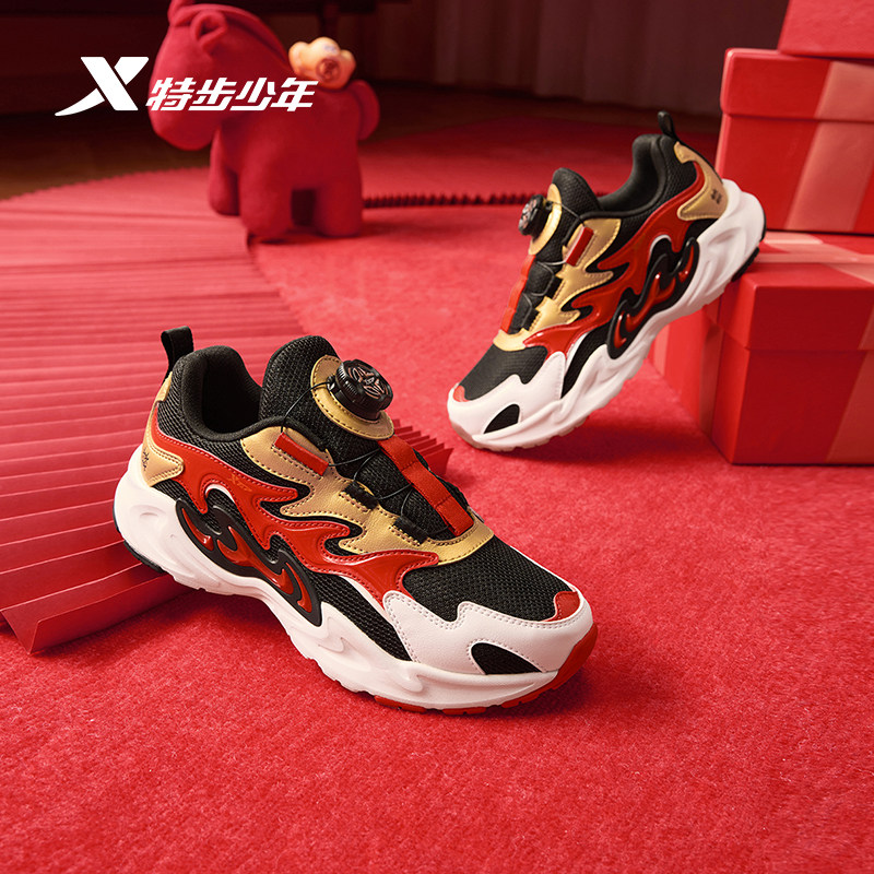 福燈贺岁|特步男童鞋新年款儿童旋钮扣中大童跑步鞋男防滑运动鞋