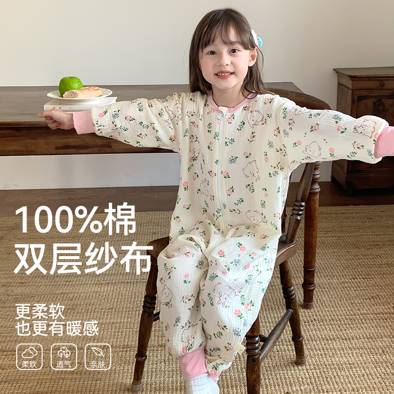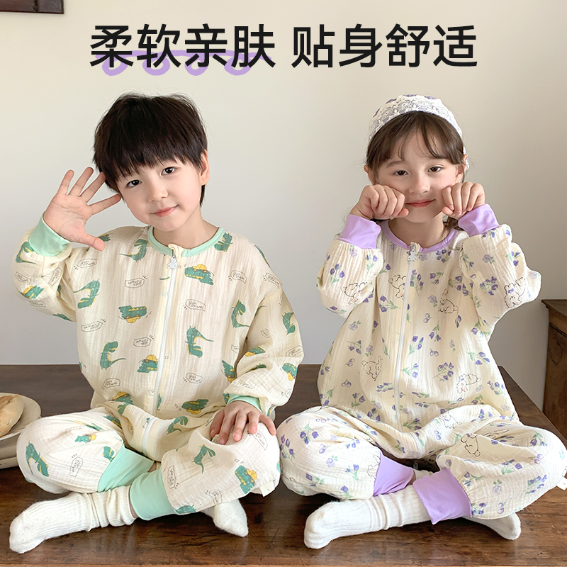 儿童睡袋纯棉秋季防着凉男童女童夏天睡衣防踢被宝宝春秋款连体衣
