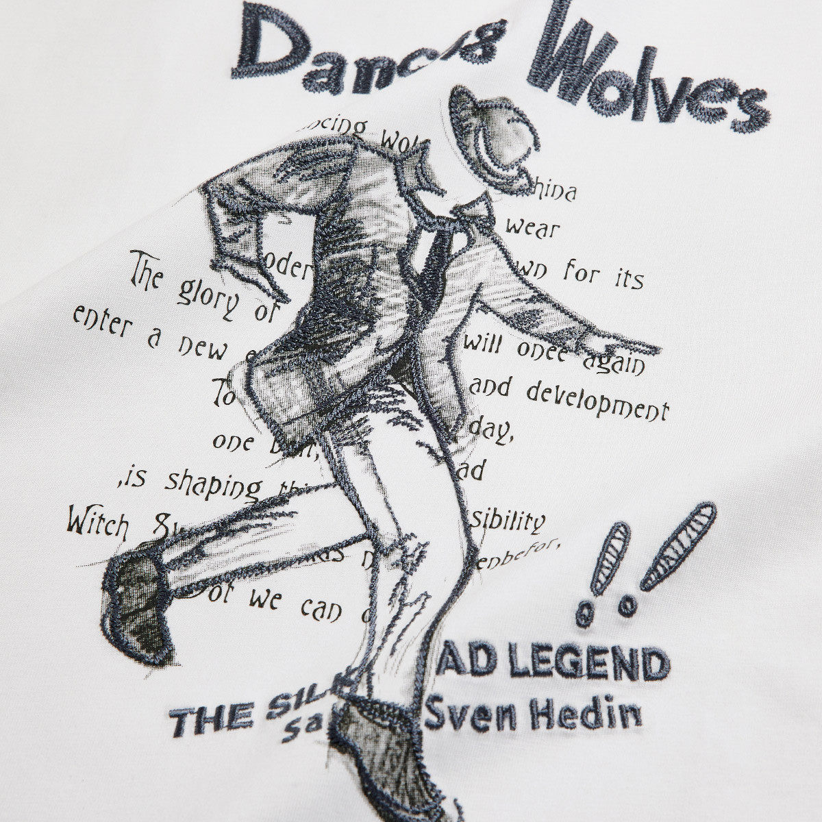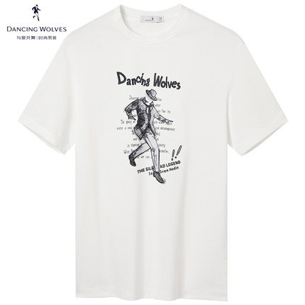与狼共舞短袖圆领男纯棉刺绣T恤