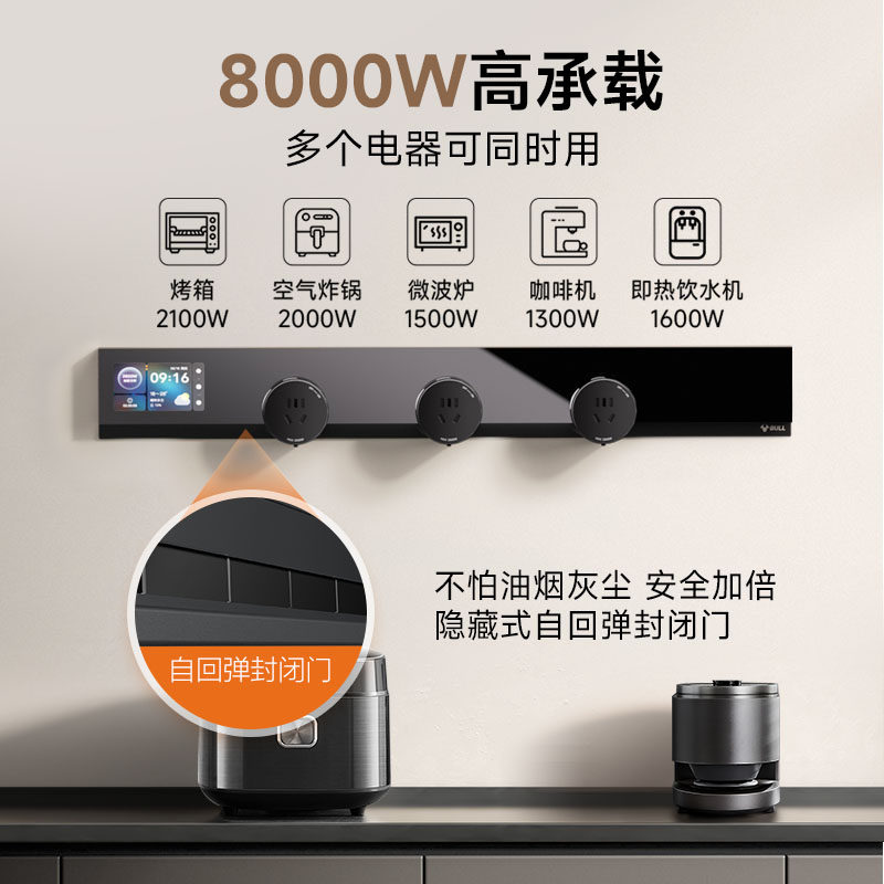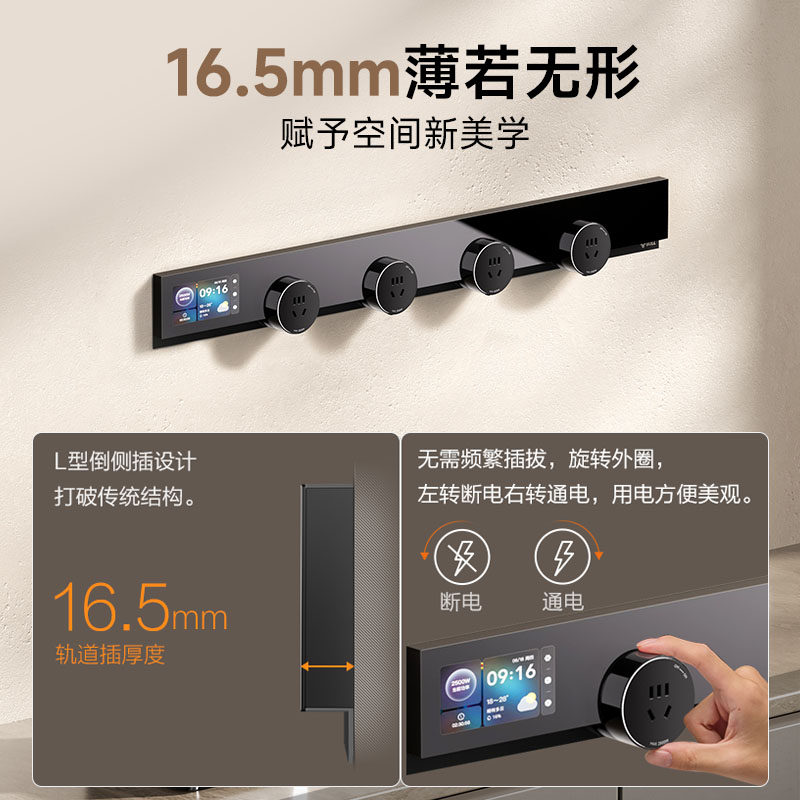 公牛智能轨道插座隐形超薄极窄移动导轨式插排家用明装开关滑轨插