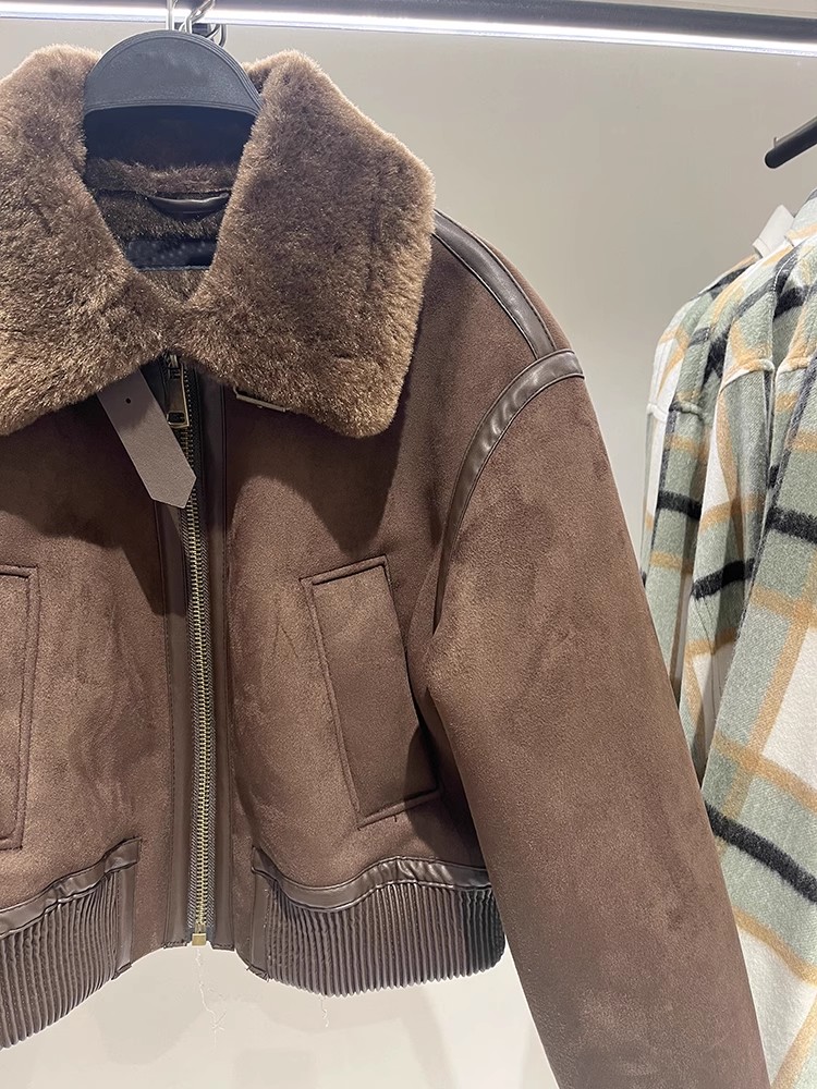 秋季女装 皮草效果双面夹克外套机车服夹克 6318239 700