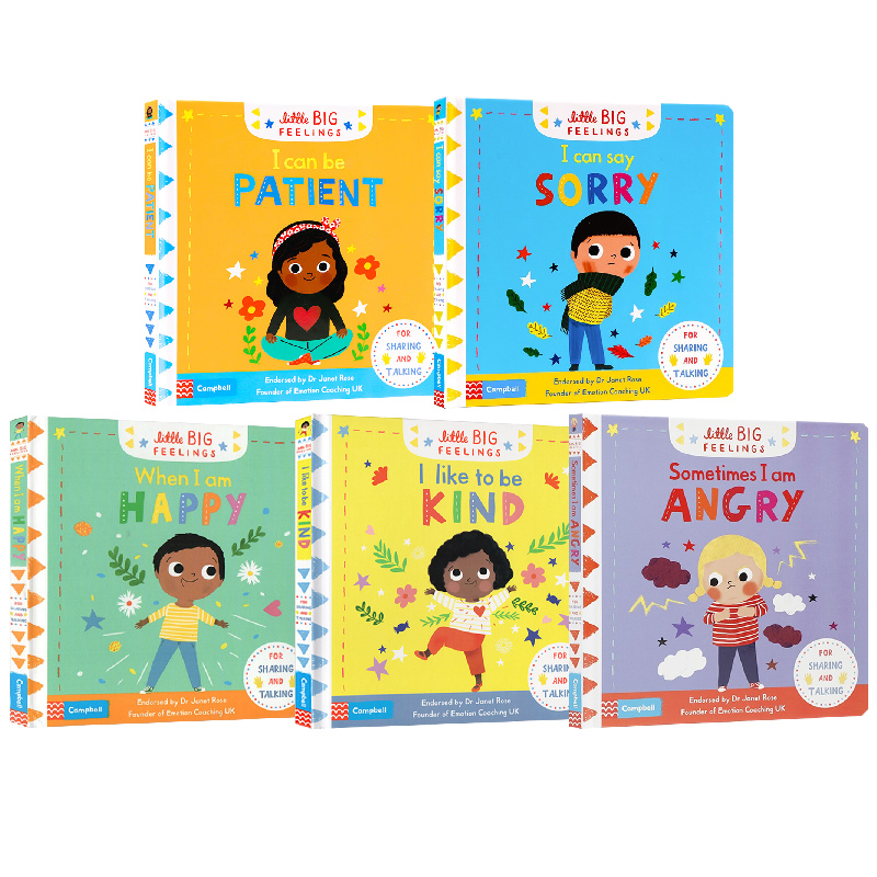 儿童情绪管理绘本5册 英文原版 Little Big Feelings 系列套装 亲子共读 互动推拉翻翻机关纸板书 情商培养习惯养成幼儿启蒙读物