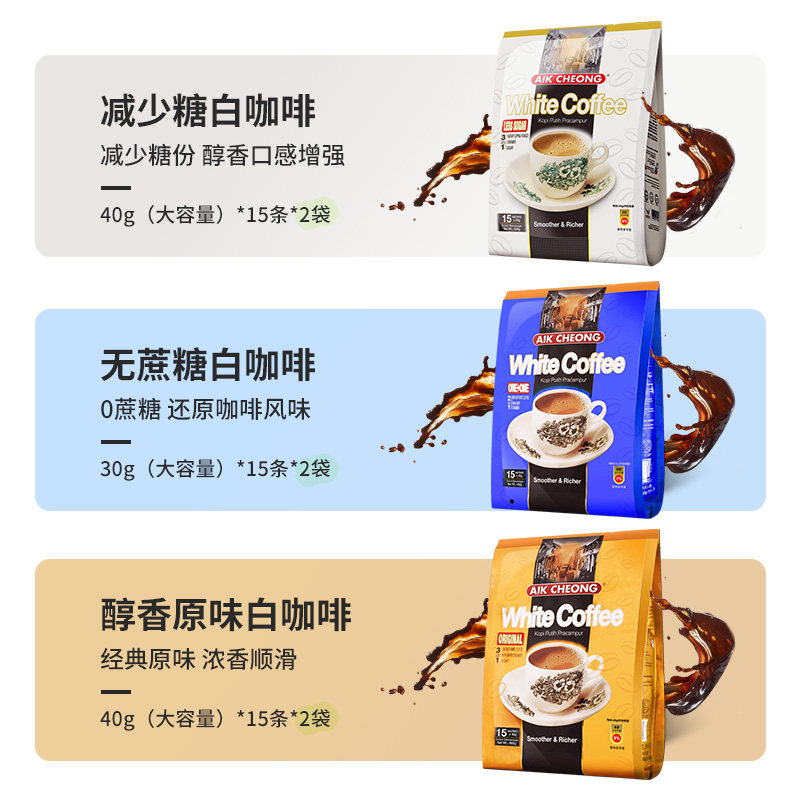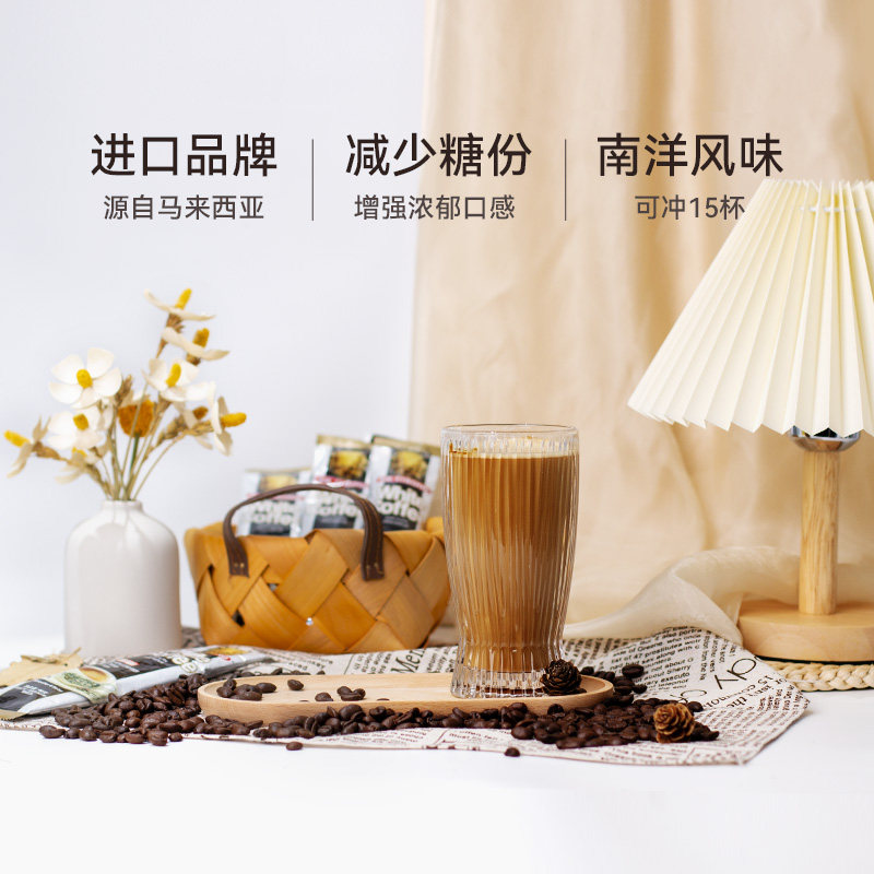 马来西亚进口益昌老街三合一咖啡减少糖速溶白咖啡粉袋装学生提神